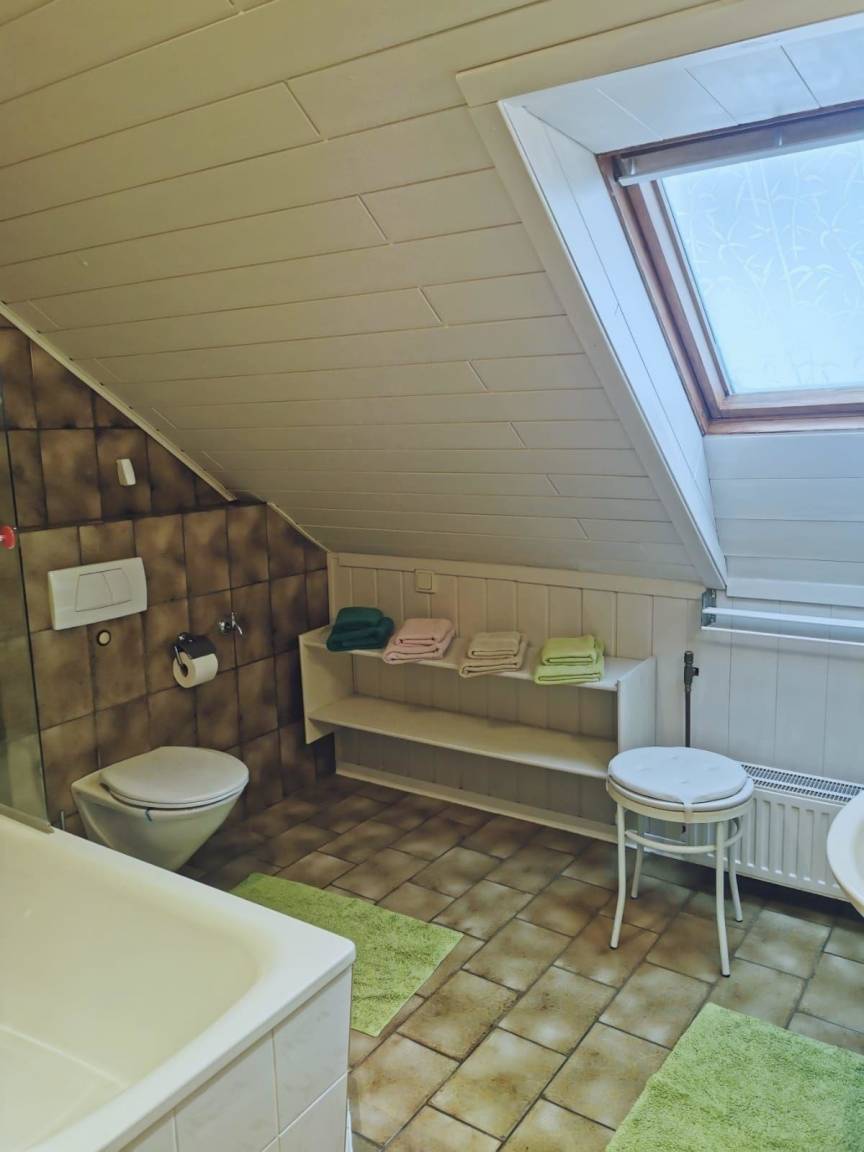 3 Schlafzimmer mit Doppelbetten (180x200cm) davon 1 Schlafz. im Erdgeschss. In SZ.2. sind die Betten auch als Einzelbetten stellbar. 1 Bad/WC, 1 Dusche sep.. 1 WC mit Waschgelegenheit im Erdgeschoss. Bettwäsche, Hand- und Duschtücher sowie Geschirrtücher sind im Mietpreis enthalten. Zwei Schlafzimmer mit Smart TV. Ein Schlafz. und das Wohnzimmer mit Sat TV
