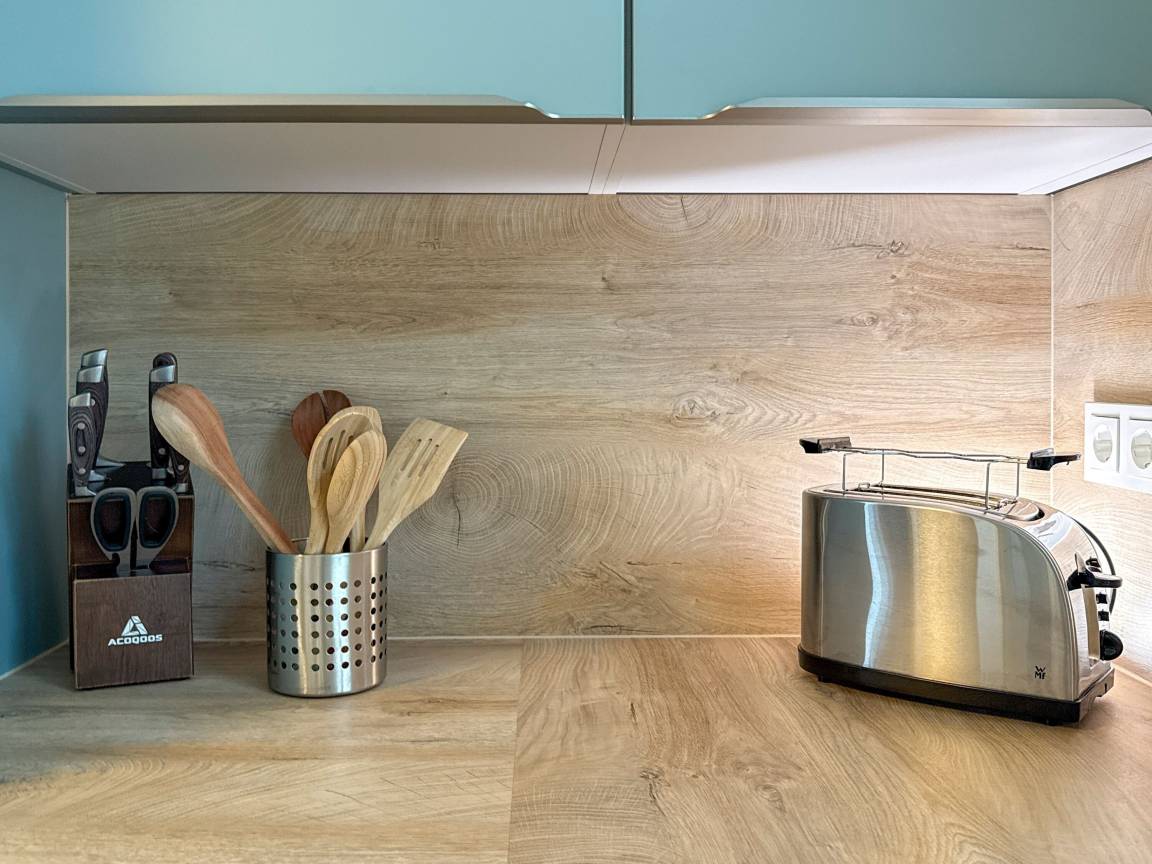 Küche: Voll ausgestattet mit Backofen, Geschirrspüler, Kühlschrank, Nespresso-Maschine, Toaster, Wasserkocher und vielen Extras