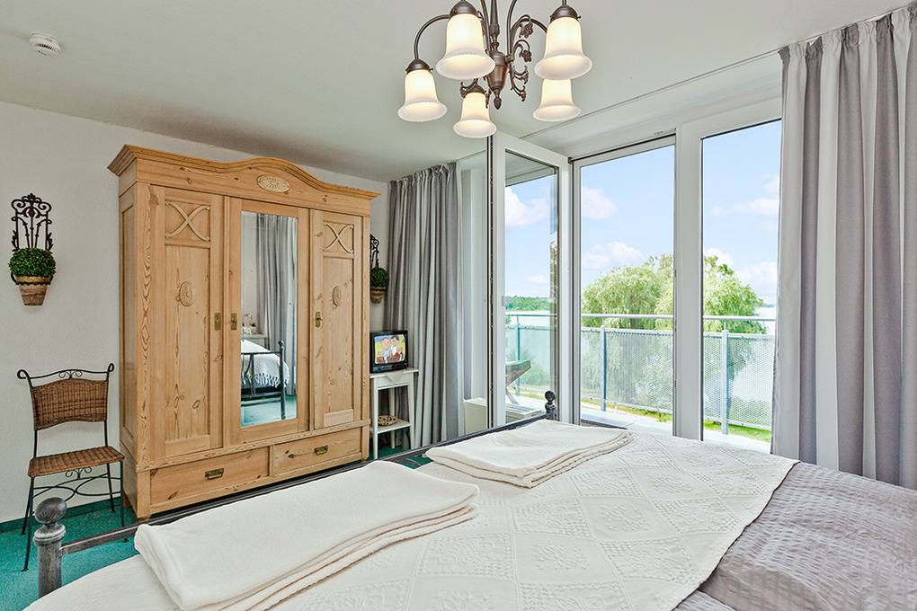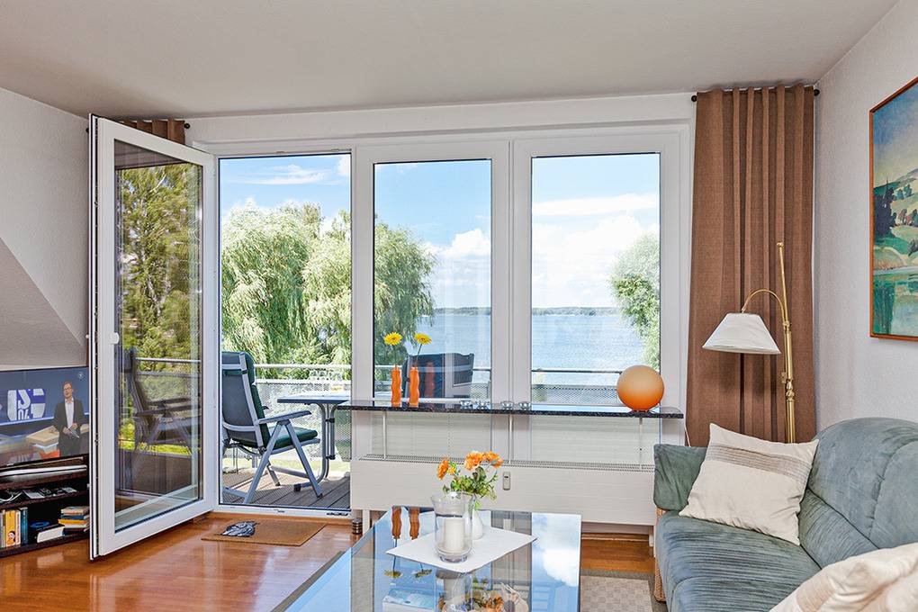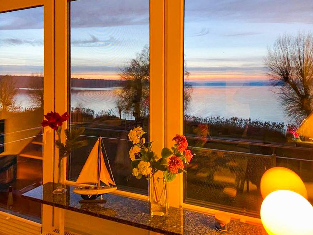 Haus: Schöne Stadtvillen auf einem großzügigen, parkartigen Gartengrundstück direkt an der Müritz. Eigene Badestelle. Exklusive Ferienwohnung mit einzigartigem Seeblick aus der 2. Etage. Sehr geschmackvolle Einrichtung, moderne Komfortausstattung. Internet über W-Lan, SMART-TV / Kabel-TV, Radio/CD. Zentralheizung. Nichtraucherwohnung. 2 Balkone, jeweils mit Sitzmöbeln und Panoramablick auf die Müritz. Tiefgaragenplatz für 1 Pkw vorhanden. Abstellraum für Fahrräder.