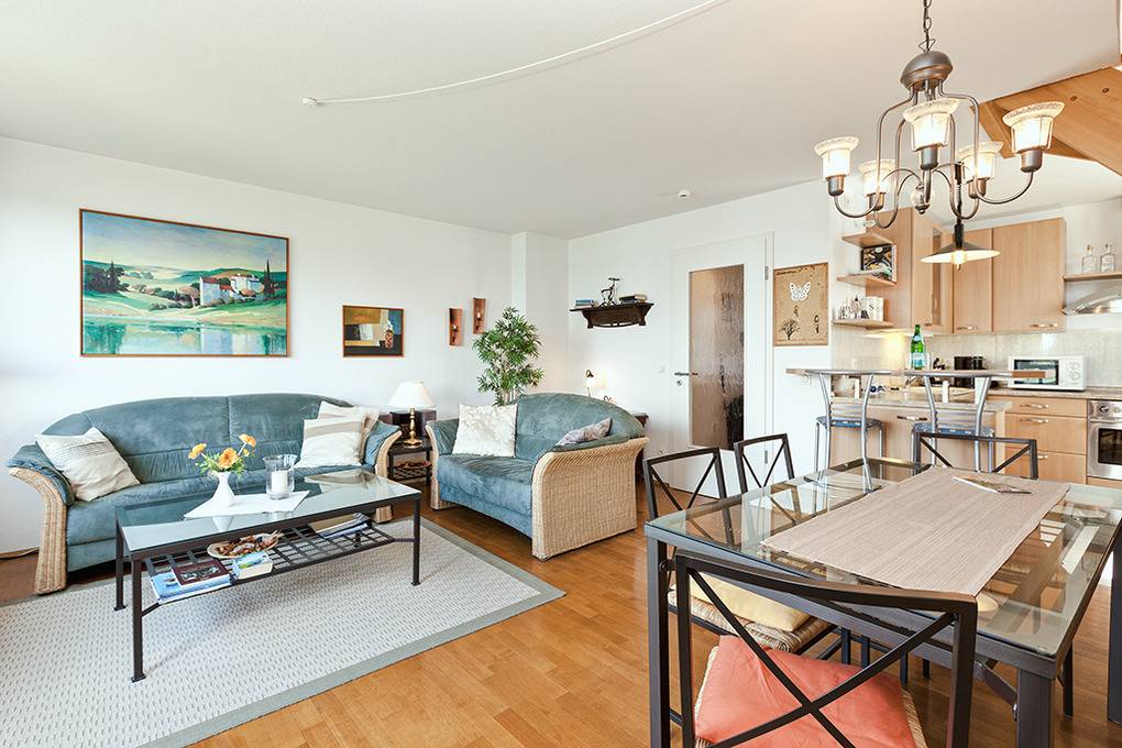 Nebenkosten: Endreinigung 100 € (wird bei Buchung erhoben). Kurtaxe. Bettwäsche, Handtücher stellt der Vermieter 34 €/Pers (wird bei Buchung erhoben). Zusätzliche Leistungen Kostenloser Internetzugang über W-Lan. Wäscheservice bei der Verwalterin auf Wunsch (Gebühr). 1 Pkw-Stellplatz in der Tiefgarage im Preis inklusive. Kinder Babybett/Hochstuhl zusätzlich zur maximalen Personenzahl, jeweils ohne Berechnung (Bestellung). Haustier nicht erlaubt.Räume & Aufteilung