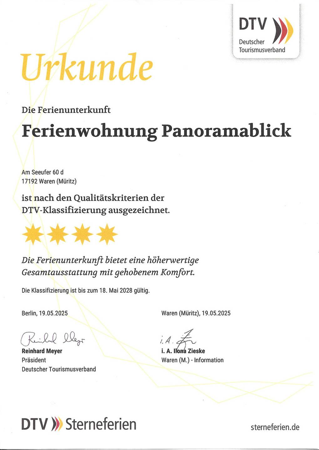 Ort: Waren (Müritz). Beste Lage in erster Reihe direkt am Ufer des Müritzsees. Herrlicher Wasserblick. Eigene kleine Natur-Badestelle! Weitere schöne Badestellen nur 200 m und 600 m entfernt. Fahrradverleih 50 m. Hafen mit Restaurants 500 m. Ortsmitte mit Geschäften, Restaurants, Kino ca. 800 m.