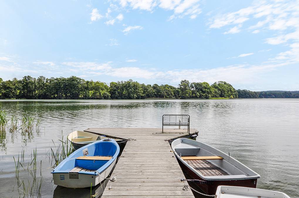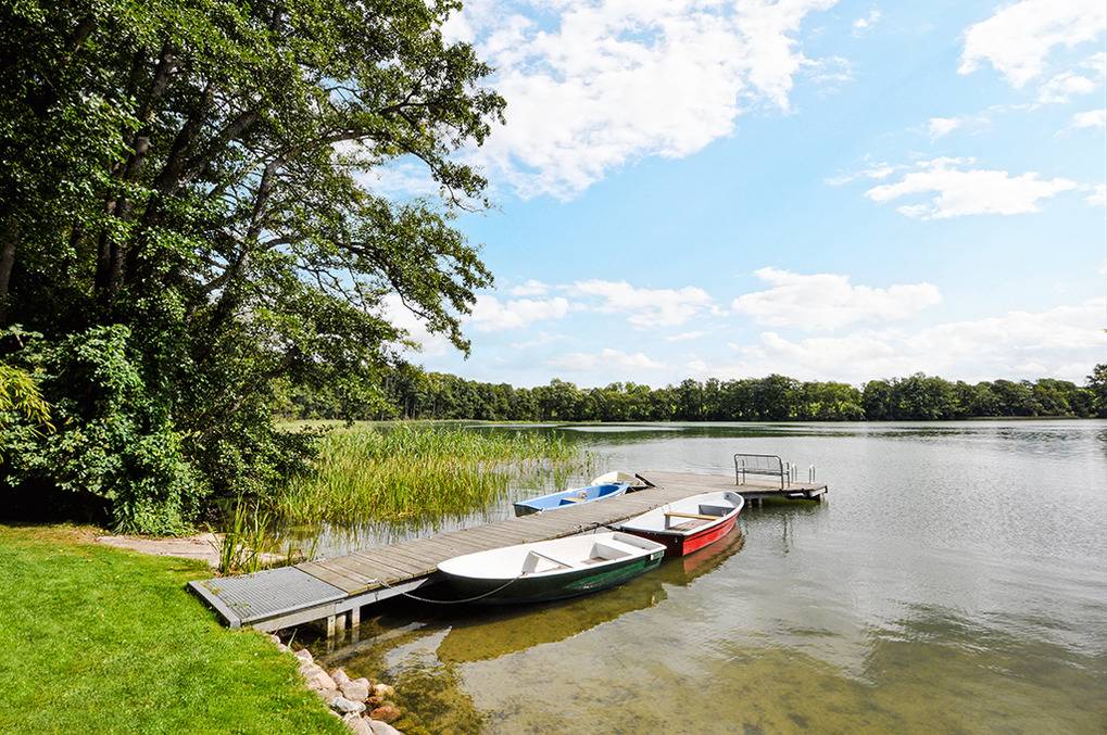 Ort: Klein Labenz. Idyllische Lage unmittelbar am Labenzer See. Großes Naturgrundstück mit sechs Ferienhäusern, Spielplatz, eigenem Boots- und Badesteg (50 m). Strandbad Klein Labenz mit Sandstrand, Liegewiese, Abenteuer-Spielplatz ca. 600 m. Campingplatz mit kleinem Shop, Imbiss 800 m. Warin 3 km, Hansestadt Wismar 30 km. Schwerin 40 km.