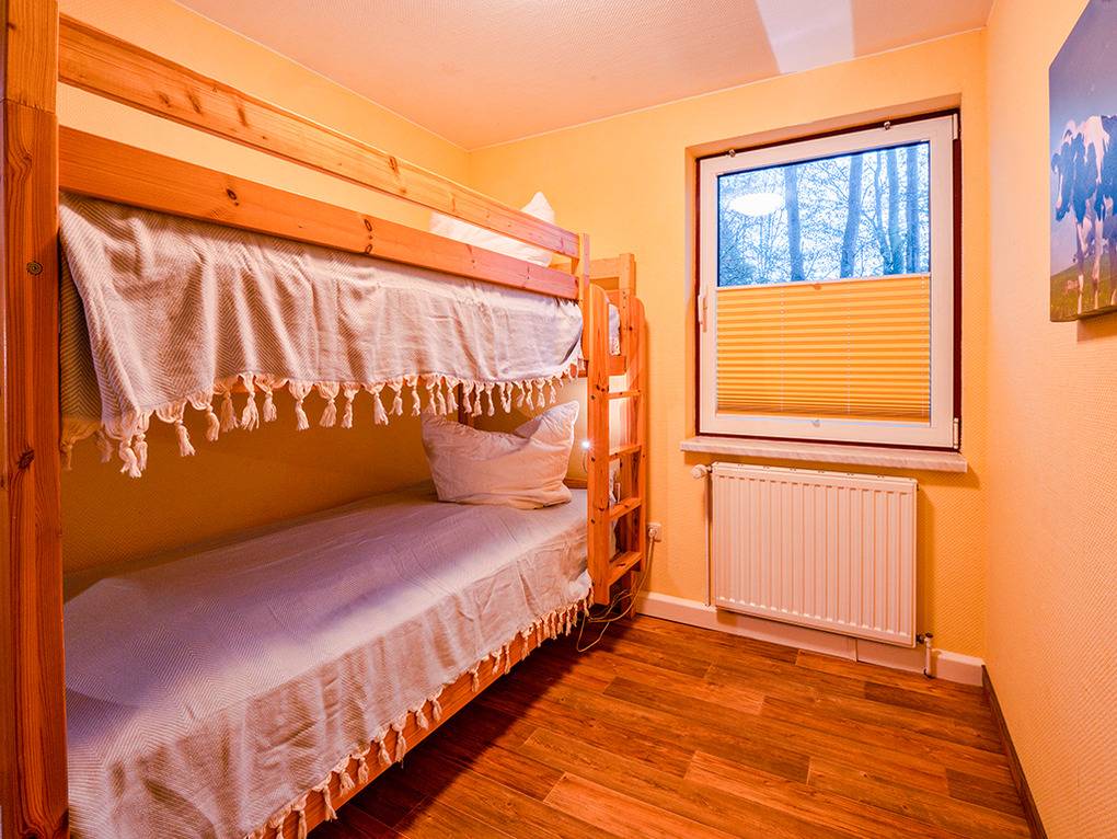D 45.122 Ferienhaus 2-4 Pers.: 3-Zimmerhaus mit 57 qm Wohnfläche. Wohn-/Essraum mit Sofa-Sitzecke, Sat-TV, DVD, Radio/CD, Esstisch. Separate Küche mit Backofen, Mikrowelle, Spülmaschine. Doppelzimmer. 2-Bettzimmer mit Etagenbett. Bad: Du, Wb, WC.