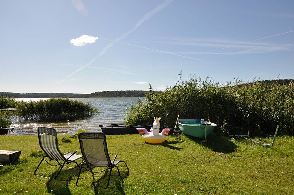 Haus: Schöne Bungalows mit Wasserblick und eigener Badestelle! Die vier Reihenbungalows sind in Hanglage erbaut und verfügen alle über einen schönen Seeblick. Gemütliche, funktionale Einrichtung. Internetzugang über W-Lan. Heizung über E-Radiatoren. Jede Einheit mit großer Terrasse, Sitz- und Liegemöbeln, Grill, Wasserblick. Öffentlicher Parkplatz nur 50 m (kostenfrei). In der Anlage: Schaukel, Tischtennis-Platte, Trampolin. Ruderboot, Kanu, Stand-Up-Paddel-Board (Gemeinschaftsnutzung, teilweise Gebühr). Hinweis: Ruderboot-Nutzung im Mietpreis inklusive! Angelberechtigung beim Fischereiaufseher erhältlich.