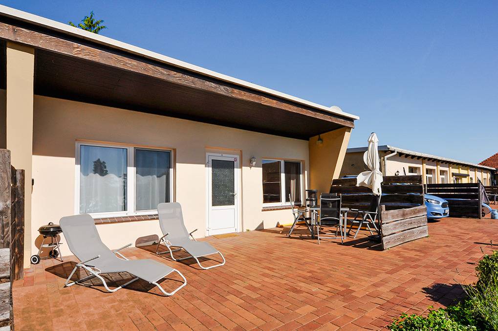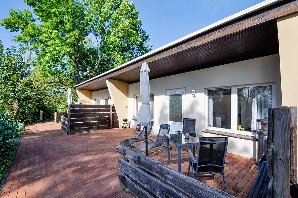 D 45.125A Ferienhaus 2-5 Pers.: 2-Zimmerhaus mit 36 qm Wohnfläche. Wohn-/Essraum mit Sofa-Sitzecke (Schlafsofa 1 Pers.), Sat-TV, Esstisch, Küchenzeile (Backofen, Mikrowelle). 4-Bettzimmer mit Doppelbett, Etagenbett. Bad: Du, Wb, WC. Terrasse mit Sitz- und Liegemöbeln, Grill, Wasserblick.