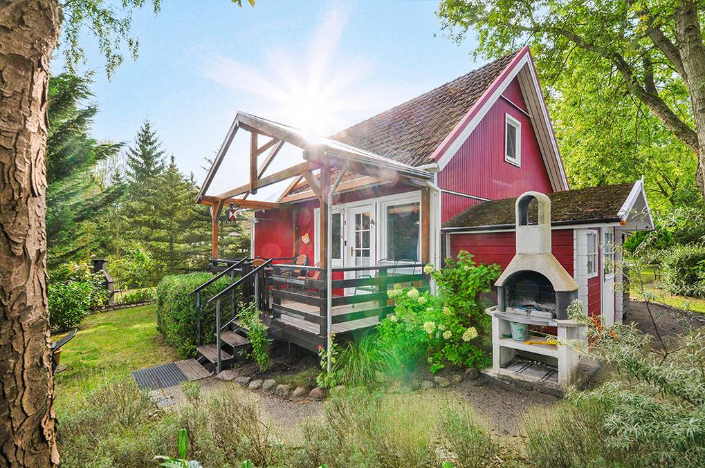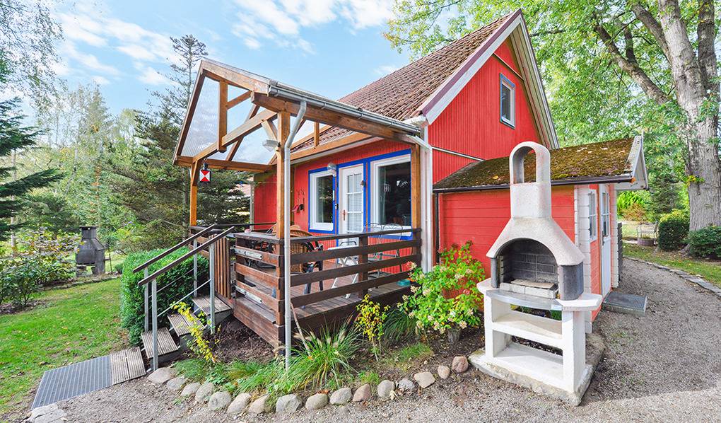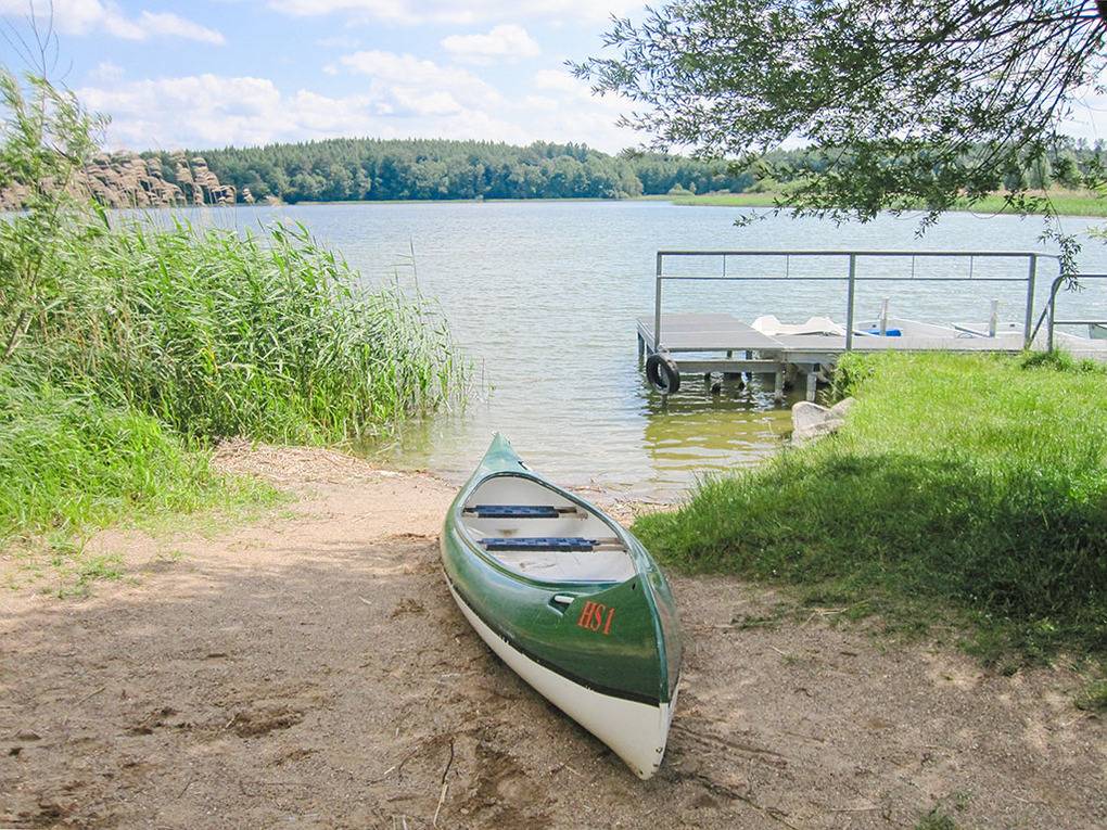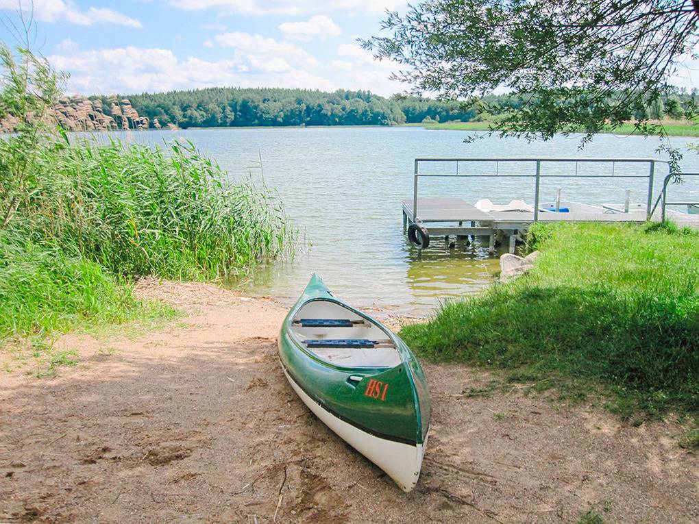 Haus: Kleine, familienfreundliche Anlage mit 16 Ferienhäusern, von Wäldern umgeben. Eigene Badestelle mit Liegewiese, Bootssteg (50 m). Großer Sportplatz (Volleyball, Fußball), Kinderspielplatz mit Sandkasten. Pkw-Stellplätze in der Anlage.