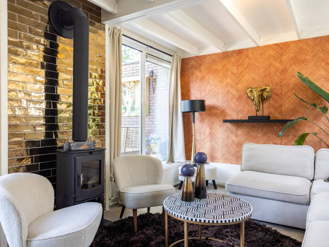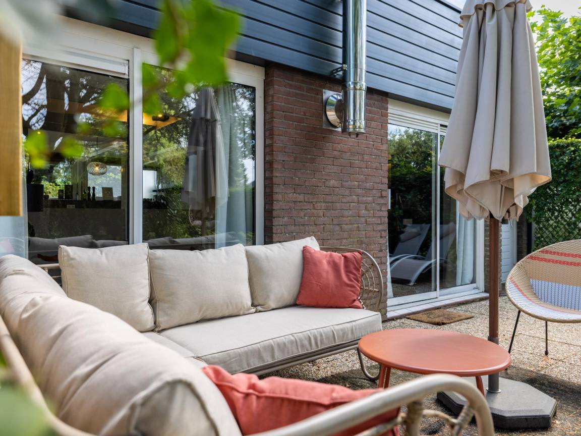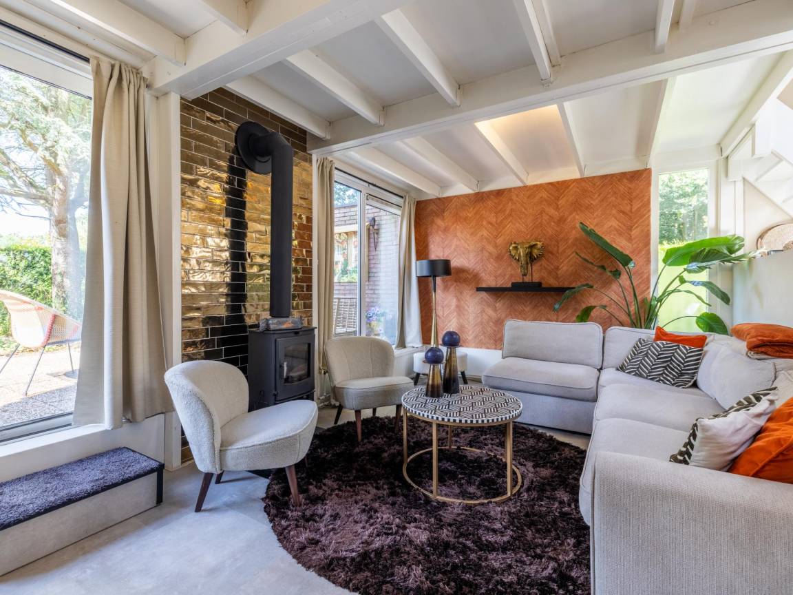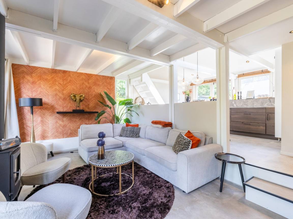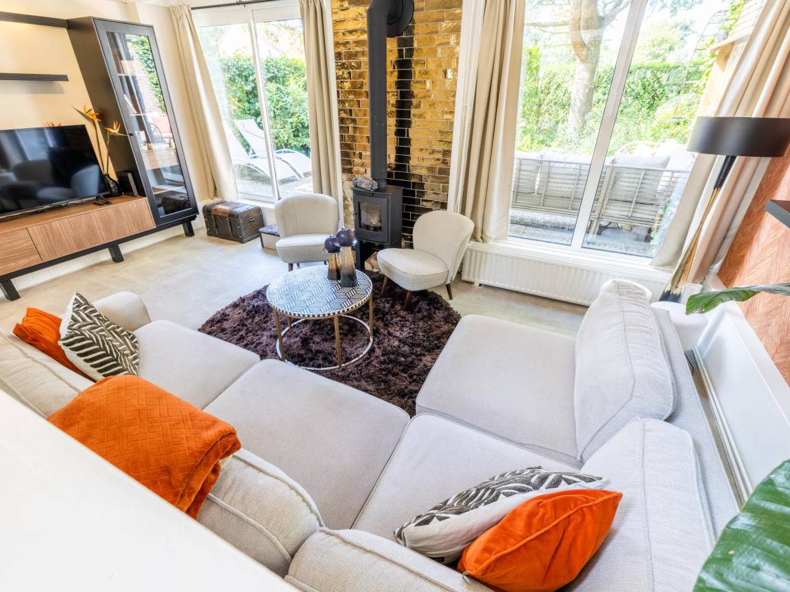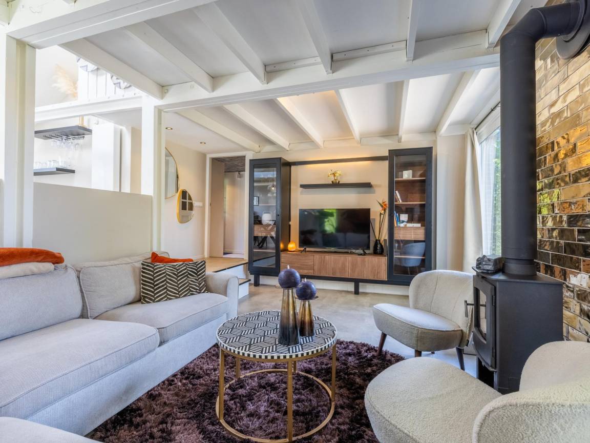 Hausbeschreibung : Modernes und gemütliches Ferienhaus für 5 Personen mit großem, grünem Garten, Kamin und eigener Sauna. Das Haus verfügt über 2 komfortable Schlafzimmer, eine geräumige und voll ausgestattete Küche, eine gemütliche Sitzecke und eine warme, moderne Einrichtung. Alles ist vorhanden für einen erholsamen und komfortablen Aufenthalt zu jeder Jahreszeit