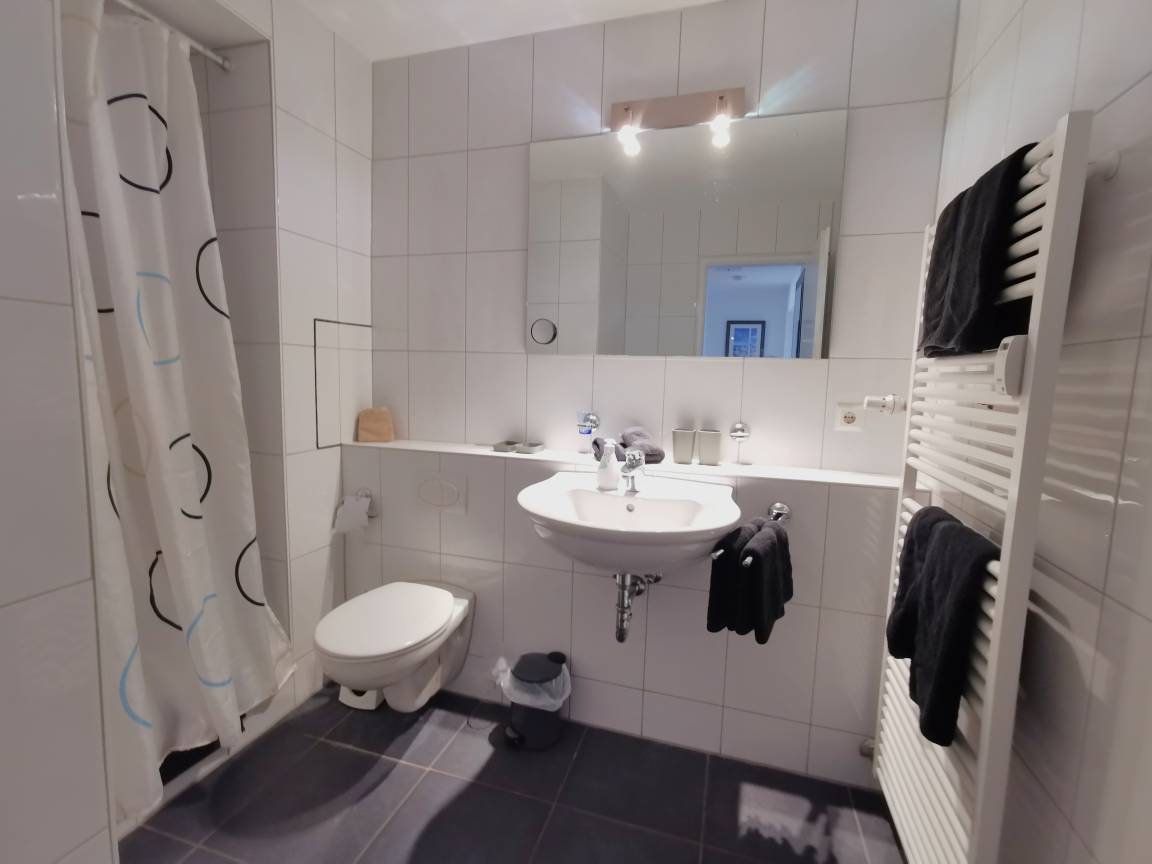 Die Wohnung verfügt über ein Badezimmer mit Dusche und WC.