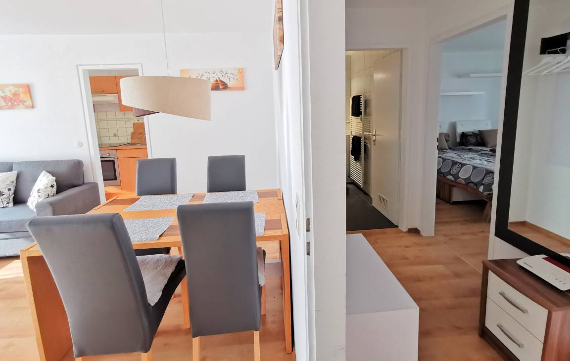 Die 2-Zimmer-Ferienwohnung mit einem separatem Schlafzimmer und Doppelbett hat einen nach Süden ausgerichteten Balkon.