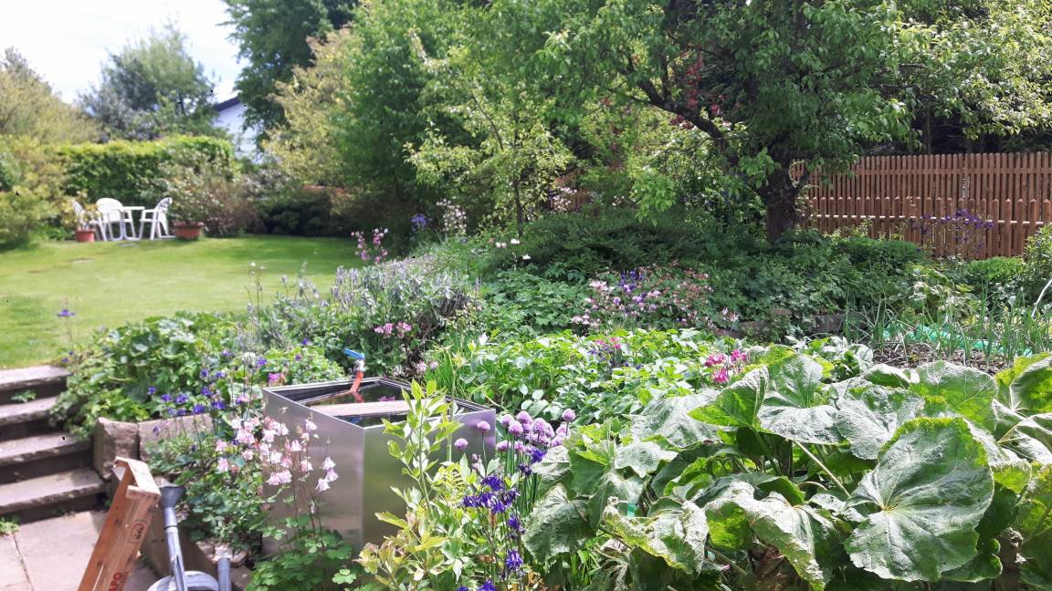 Mitte Mai blüht die Akazie in unserem Hof und verbreitet einen betörenden Duft im Wettstreit mit den anderen Sträuchern. Im Juli gibt es immer noch Bodensee Erdbeeren und Kirschen sowie die ersten frischen Äpfel.