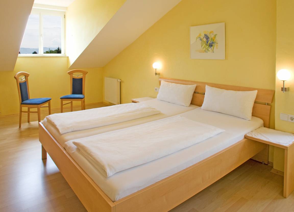 Die Ferienwohnungen mit je 45 qm sind im 2. OG mit See-und Bergsicht, Südbalkon, Wohnzimmer mit Küchenzeile, Schlafzimmer, Bad, Kabel-TV und Internetzugang für 2-3 Personen. Auf Wunsch bieten wir Ihnen unser Frühstücksbuffet oder Brötchenservice an.