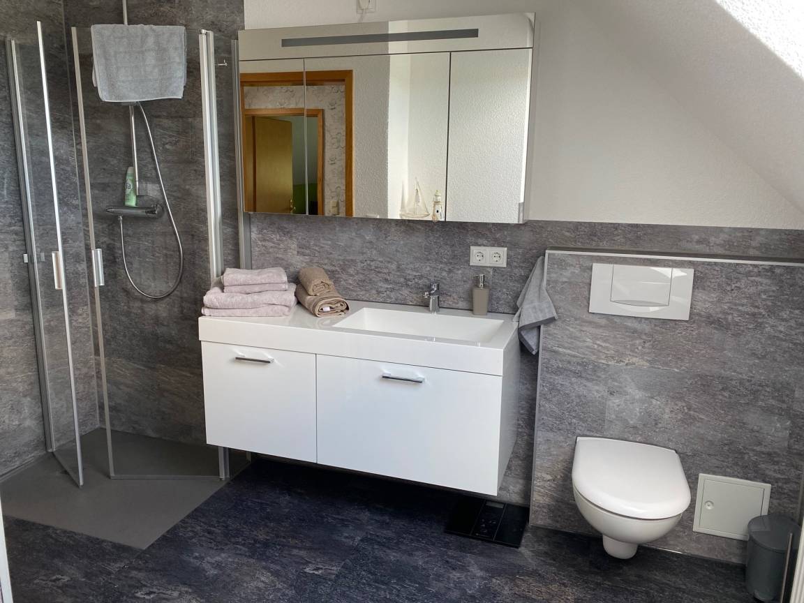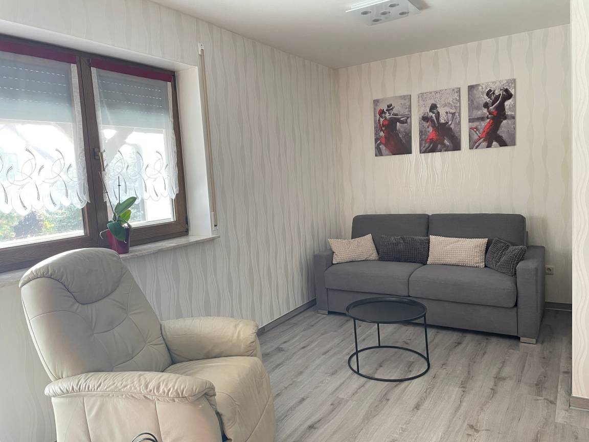 Moderne, neu eingerichtet Ferienwohnung in der Fachwerkstatt Wasungen. Die ca. 60m² große Ferienwohnung bittet Platz für 4 Personen und ein Kleinkind bis 3 Jahre im Babybett.