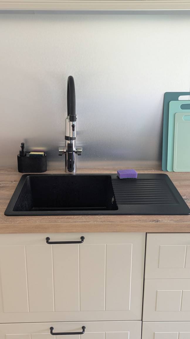 Ein Schlafzimmer + gemütliche Schlafcouch im Wohnbereich. Voll ausgestattete Küche mit Spülmaschine, modernes Bad mit großer Dusche und Waschtrockner, WLAN und TV – alles da für entspannte Urlaubstage.