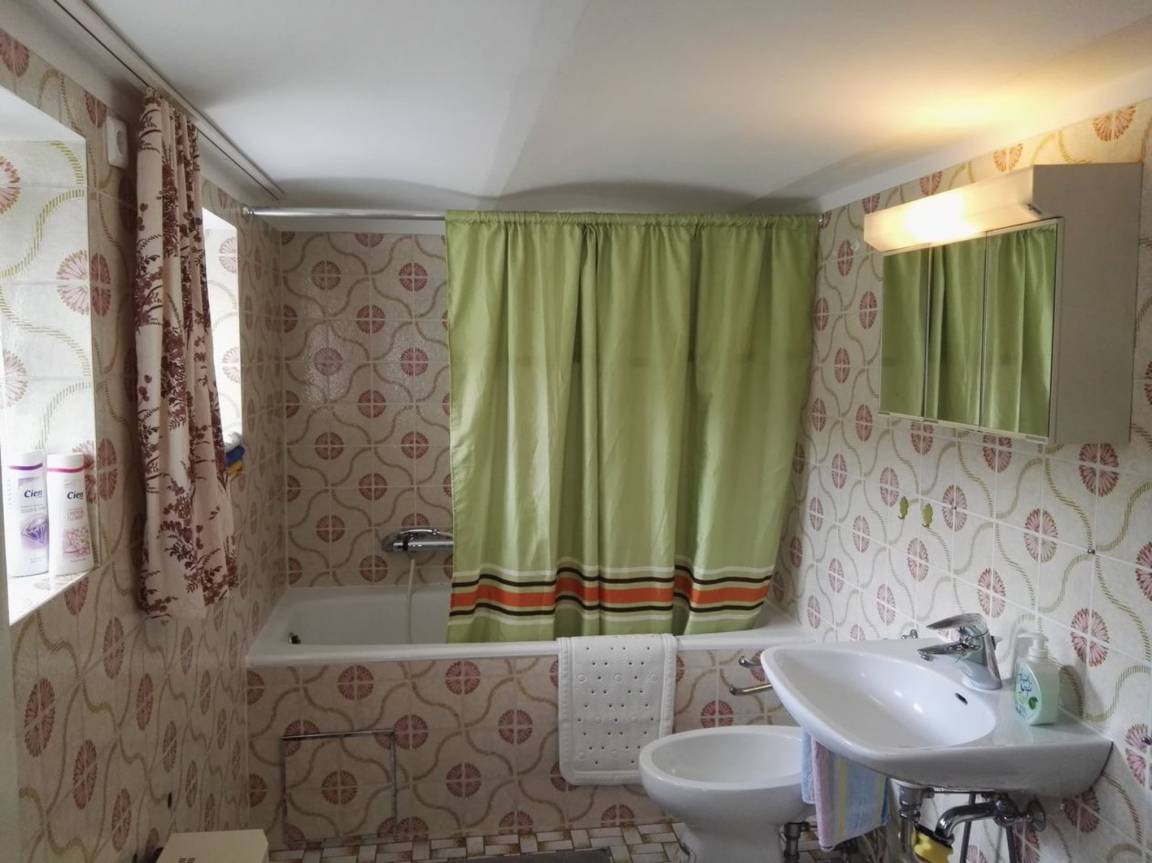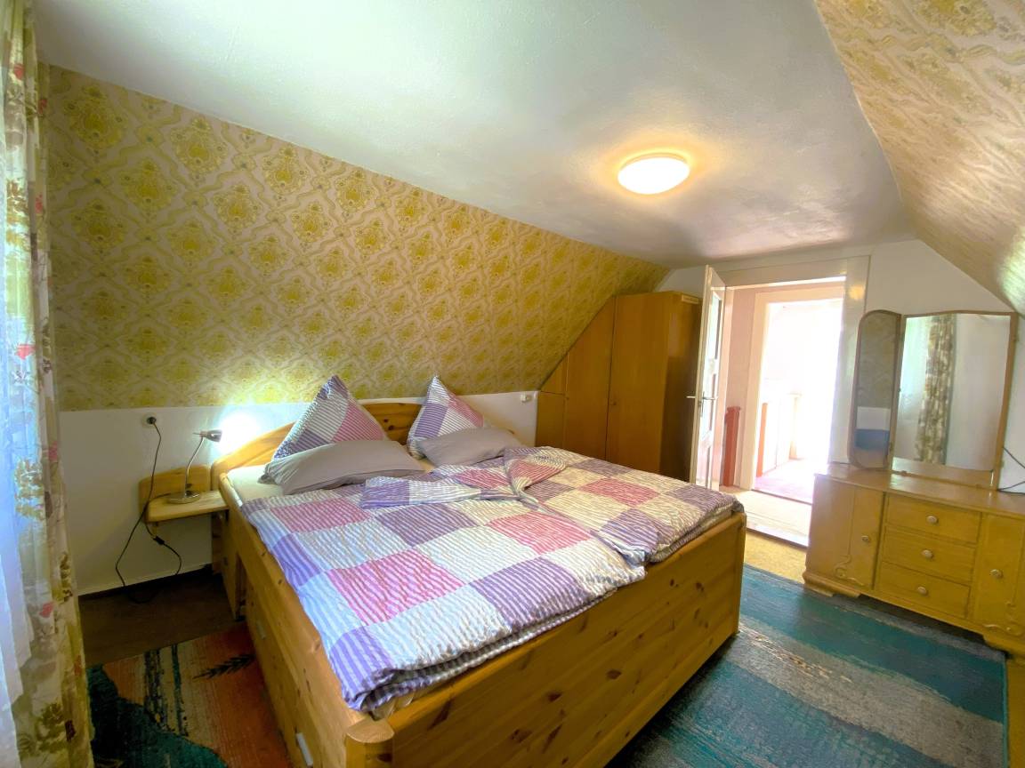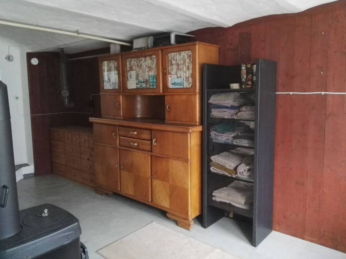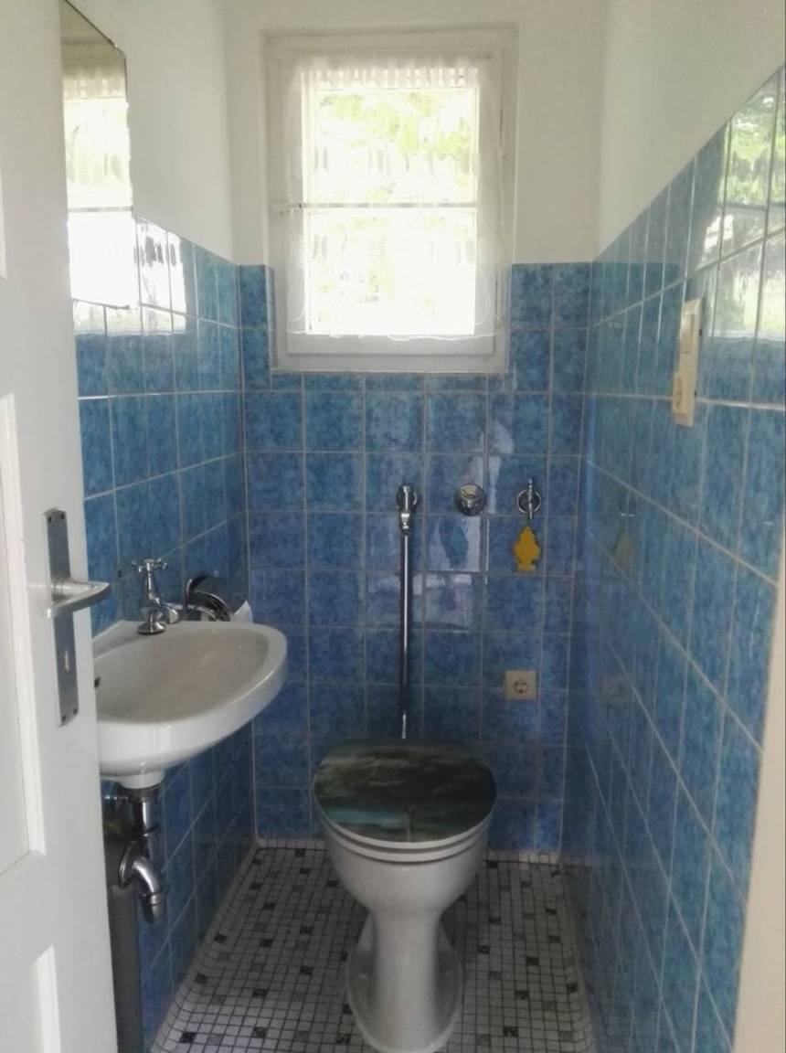 Die Küche, die Toilette und das Wohnzimmer mit ausklappbarem Schlafsofa für 1 - 2 Personen befinden sich im Erdgeschoss. Im Keller des Hauses befindet sich das Badezimmer mit Badewanne.