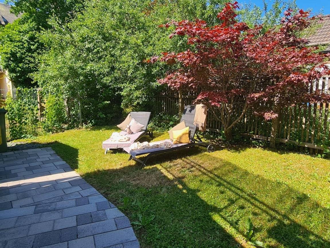 Ein Grill mit Pizzastein u. Liegestühle laden im Garten hinter dem Haus zu lauschigen u. traumhaften Sommerabenden ein.