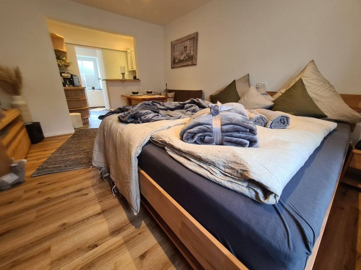 Mit hochwertiger Bettwäsche, Matratzen-Topper u. einem Smart-TV mit kostenlosen Channels, Spielesammlung u. Bücher, verbringen Sie auch bei schlechtem Wetter, gemütliche u. kuschelige Stunden in Ihrer Wohnung.
