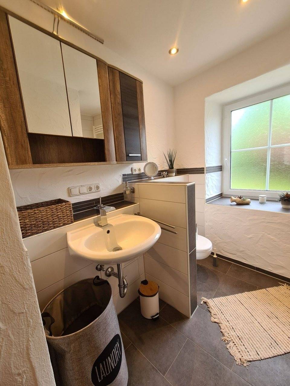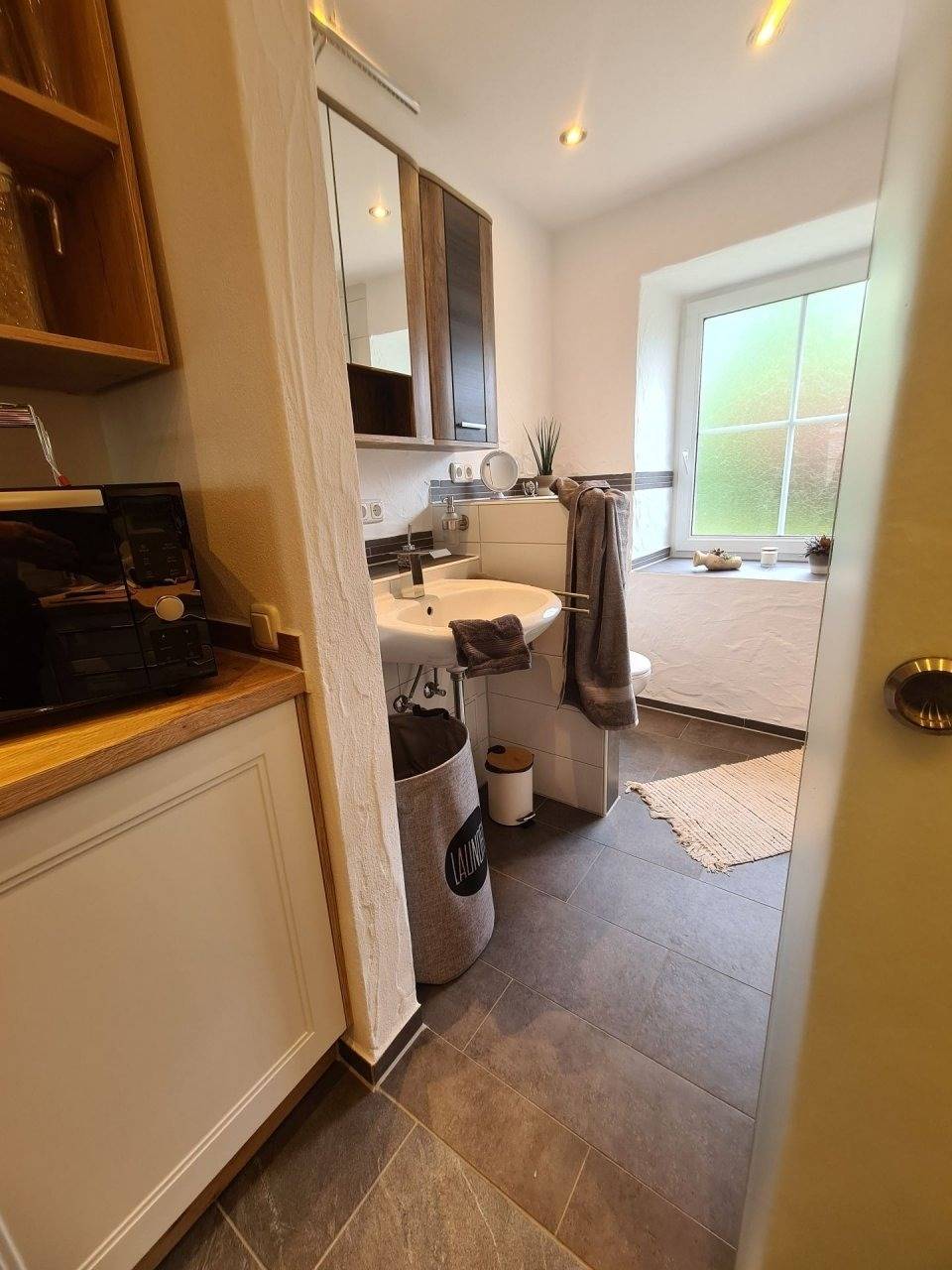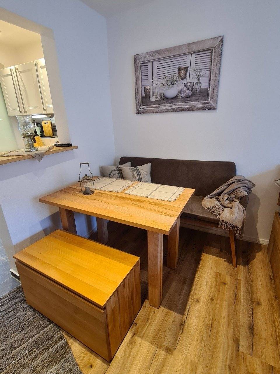 Die Wohnung verfügt über eine voll ausgestattete Küche zum Kochen mit Ihrer Familie u. einem Wohlfühlbad mit ebenerdiger Dusche u. Fußbodenheizung für wohlig warme Füße, sowie eine Waschmaschine auf der Etage für weniger Gepäck.