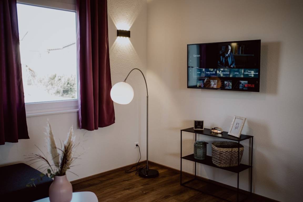 Ankommen und Wohlfühlen in unserem neu erbauten Heim in Ortsrandlage in Weisweil am Rhein,nur 8 Fahrmin. zum Europa Park, am Rande des Kaiserstuhls und Taubergiessen.15 km zur Autobahn, Bushaltestelle nur 300m entfernt.Ca. 60 Fahrmin. zum Feldberg.Die Wohnung befindet sich im 1. Obergeschoss, neben unseren beiden anderen neu erbauten komfortablen Wohnungen. Diese Unterkunft besteht aus einem offenen Raum mit 40qm Wohnfläche, der sich in Schlaf-, Wohn- und Küchenbereich gliedert.40qm, offener Wohn-Ess-und Schlafbereich,Küche, Kühlschrank mit Gefrierfach, Toaster, Wasserkocher, Cerankochfeld, Backofen, Fön, Schlafcouch, 1 Doppelbett, LAN, WLAN, SAT-TV, Netflix, Waschmaschine, Trockner, Parkplatz, überdachter Balkon.