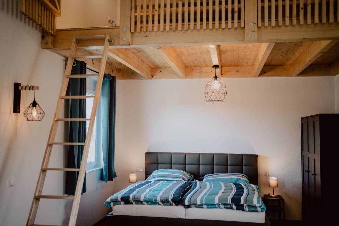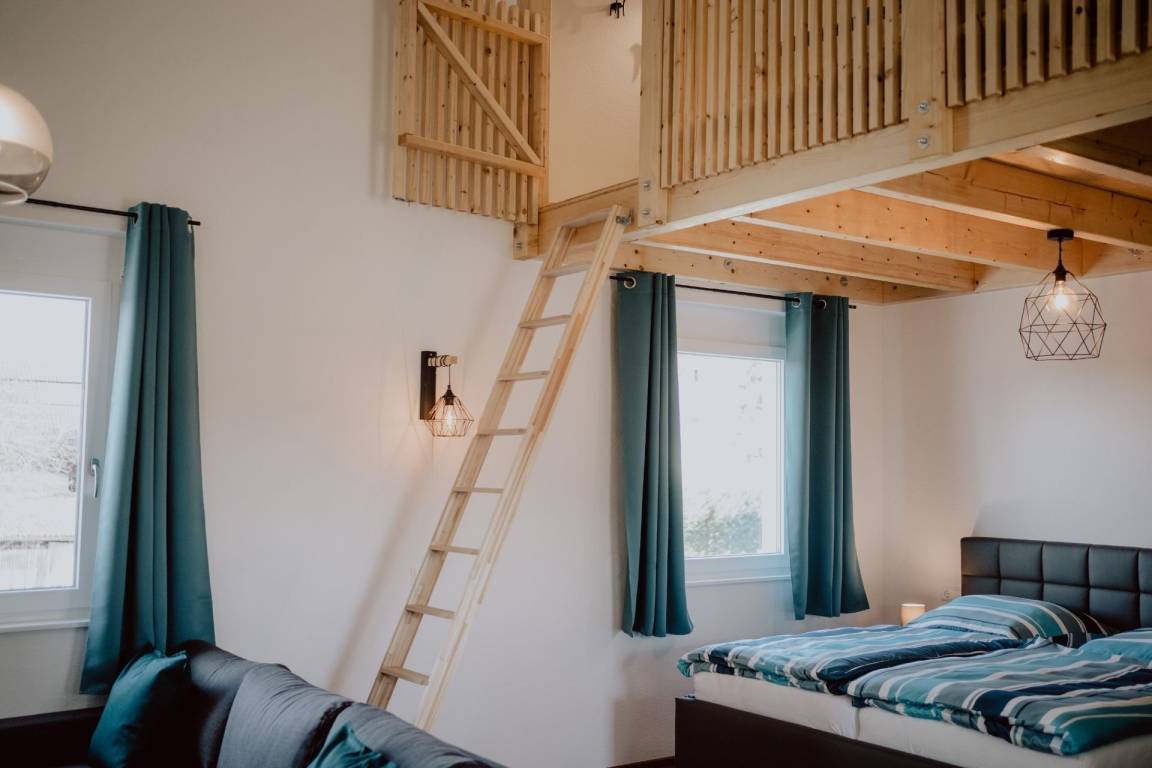 40qm, offener Wohn-Ess-und SchlafberAnkommen und Wohlfühlen in unserem neu erbauten Heim in Ortsrandlage in Weisweil am Rhein,nur 8 Fahrmin. zum Europa Park, am Rande des Kaiserstuhls und Taubergiessen.15 km zur Autobahn, Bushaltestelle nur 300m entfernt.Ca. 60 Fahrmin. zum Feldberg.Die Wohnung befindet sich im 1. Obergeschoss, neben unseren beiden anderen neu erbauten komfortablen Wohnungen. Diese Unterkunft besteht aus einem offenen Raum mit 40qm Wohnfläche, der sich in Schlaf-, Wohn- und Küchenbereich gliedert, sowie einer offenen Schlafempore mit Leiteraufgang.Küche, Kühlschrank mit Gefrierfach, Toaster, Wasserkocher, Cerankochfeld, Backofen, Fön, Schlafcouch, 2 Doppelbetten, LAN, WLAN, SAT-TV, Netflix, Waschmaschine, Trockner, Parkplatz, überdachter Balkon.