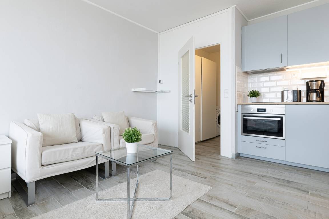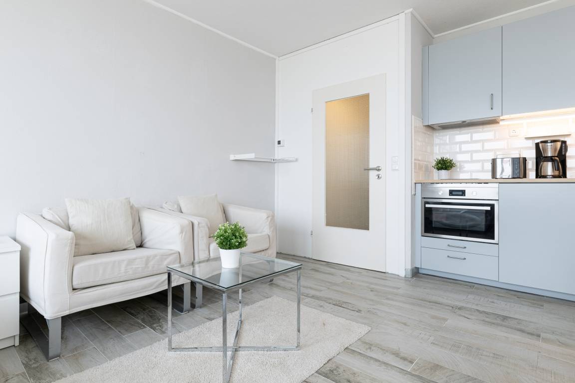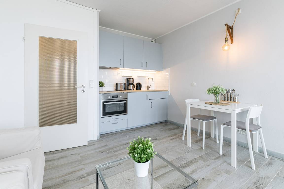 Lassen Sie sich überraschen und finden Sie heraus, was auf 26 m² alles möglich ist. Es erwartet Sie ein modernes Badezimmer und eine kleine Küchenzeile mit einer Backofen-Mikrowellen Kombination. Unter dem Design-Fußboden überrascht eine Fußbodenheizung und sorgt für ein angenehmes Raumklima. Das Doppelbett (140cm x 200cm) ist groß genug für 2 Personen und sowohl von hier, als auch von den beiden bequemen Sesseln kann man auf den großen Flachbild-TV blicken.