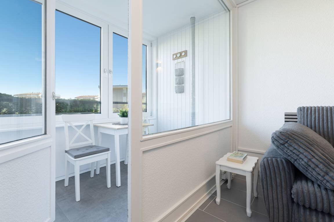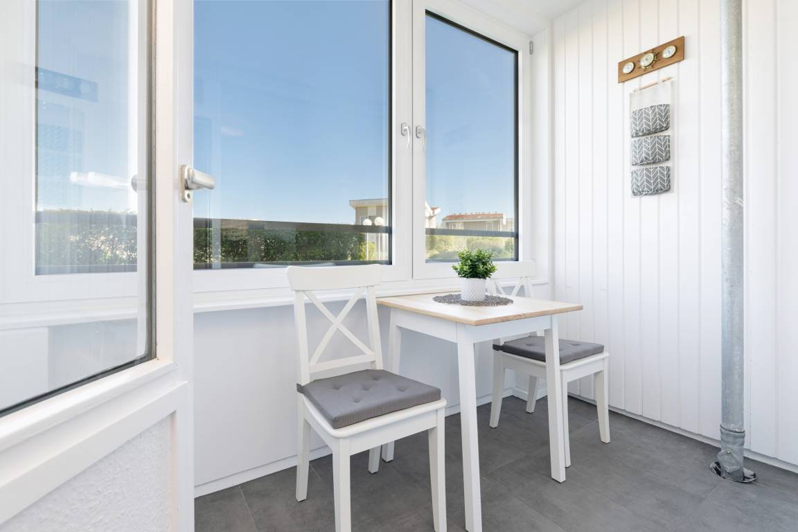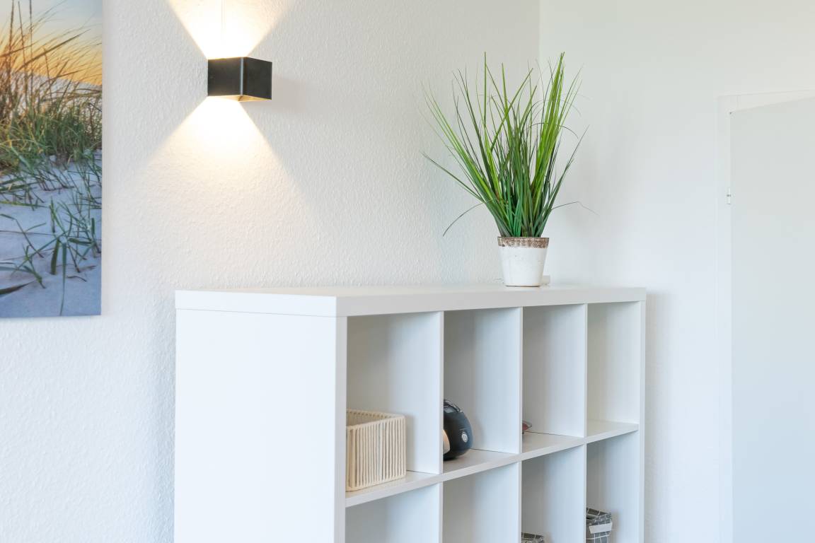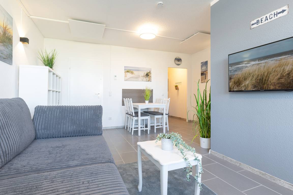 Die modern und klar gestaltete Einrichtung schafft eine angenehme Atmosphäre für Ihren Ostseeurlaub. Der Wohn- und Schlafbereich verfügt über eine gemütliche Schlafcouch (Liegefläche 140 x 200 cm), während im separaten Schlafzimmer ein komfortables Doppelbett (180 x 200 cm) für erholsamen Schlaf sorgt.