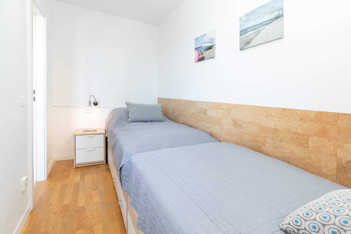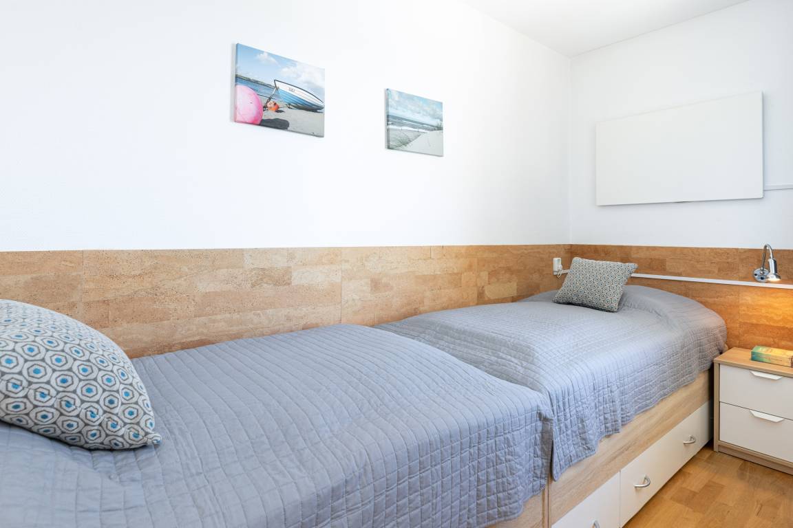 Schlafzimmer: 2 Einzelbetten, Klimaanlage, Verdunkelung: Gardinen
