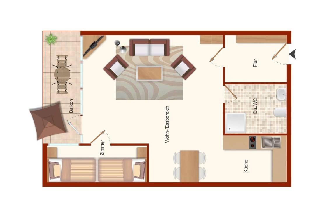 41 m² Ferienwohnung ∙ 1 Schlafzimmer ∙ 2 Gäste