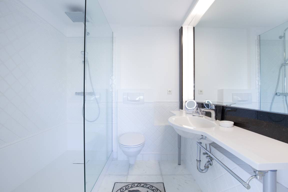 Zudem steht Ihnen im eleganten Bad eine komfortable Walk-In Dusche zur Verfügung.