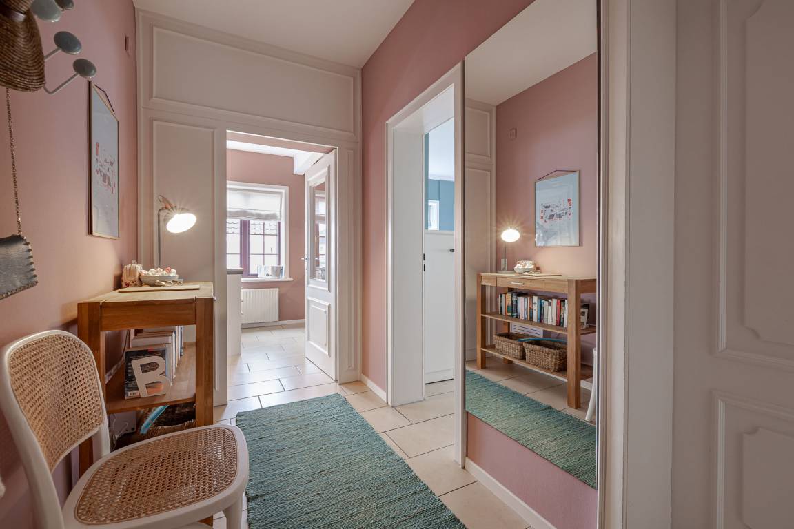 Die frische Gestaltung der Wohnung im Eckformat lässt Herzen höherschlagen. Ein "Fresh Up" durch Einrichtung Lakomy zu Beginn des Jahres 2024 verlieh der Wohnung mit neuen hochwertigen Möbeln und frischer Wandfarbe eine liebevolle Note. Die vielen Fensterflächen und die vorwiegend süd-/westliche Ausrichtung zaubern eine lichtdurchflutete und freundliche Atmosphäre.