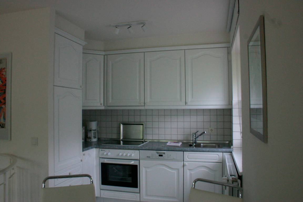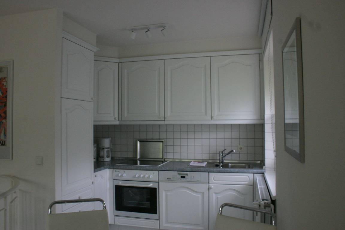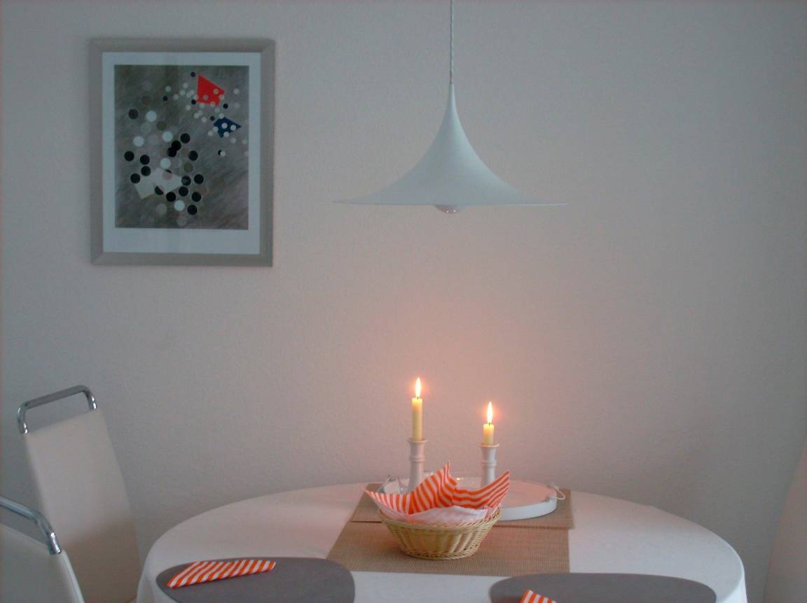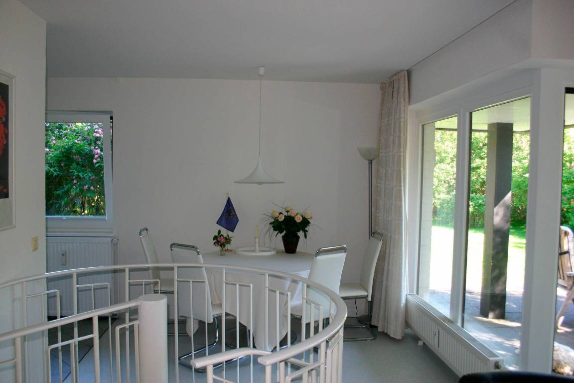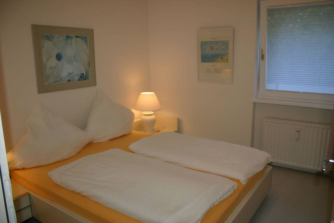 Die helle, lichtdurchflutete Ferienwohnung verfügt im Erdgeschoß über ein Wohnzimmer mit großer Fensterfront nach Süden und einer angrenzenden Küche. Daneben befindet sich das Schlafzimmer mit einem Doppelbett und einer großen Kleiderschrankwand.