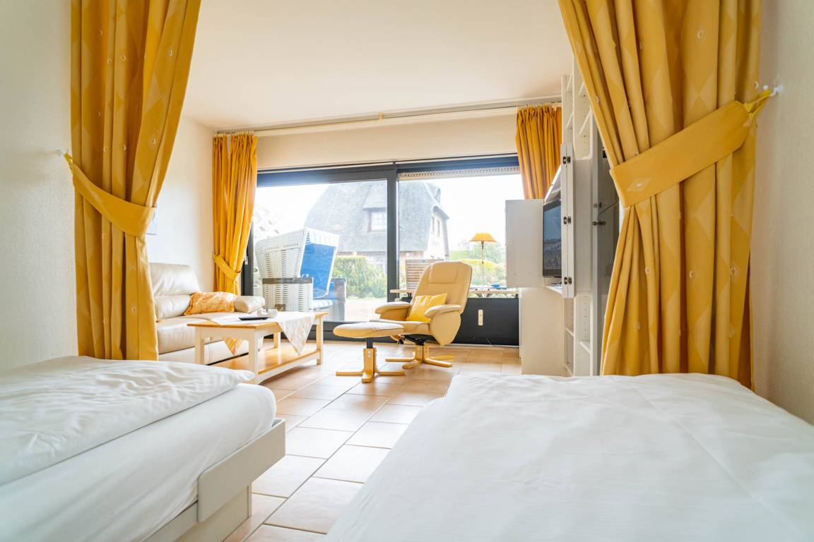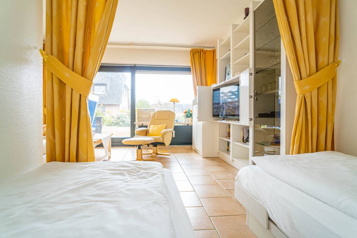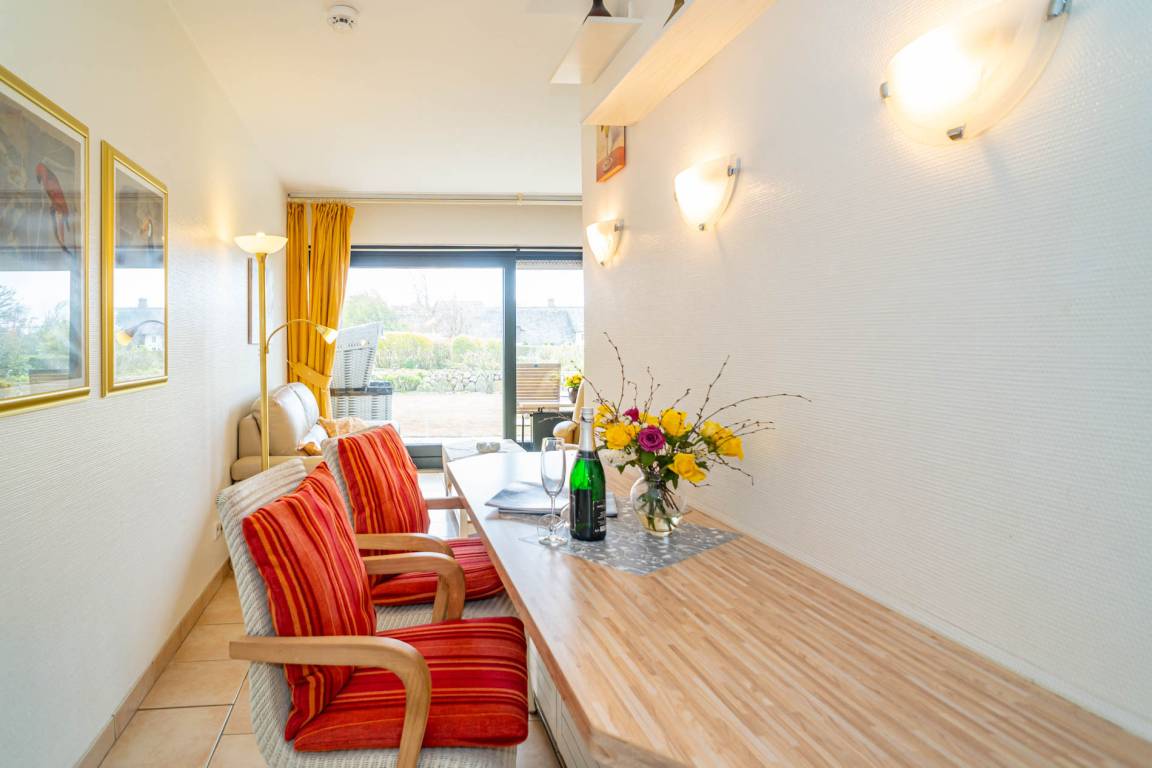 Gemütliche 1,5 Zimmer-Nichtraucher-Ferienwohnung, ca. 40 qm im Parterre zur Südseite mit Südterrasse und Gartenanteil (Strandkorb, Terrassenmöbel mit Auflagen) für max. 2 Personen.