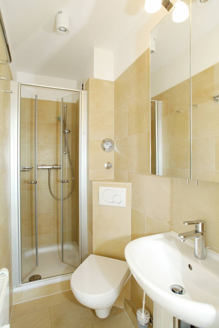 Badezimmer: Modernes Bad mit Dusche und WC.