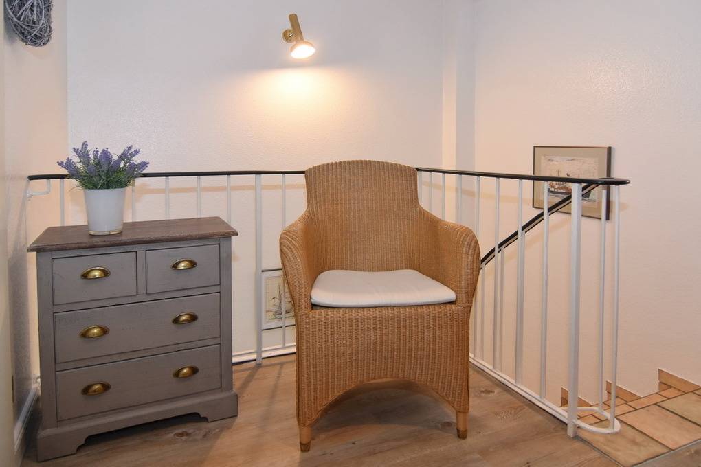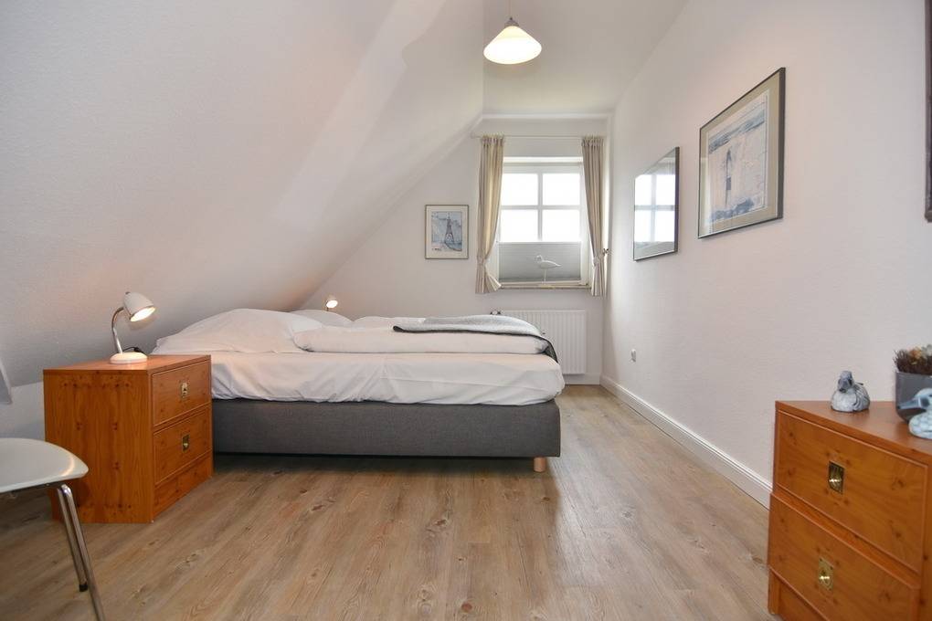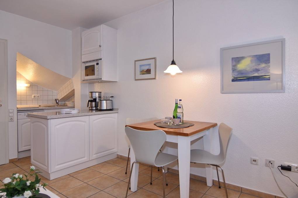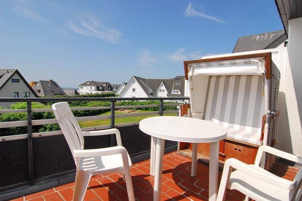 Hübsche 2-Zimmer-Maisonette-Ferienwohnung, ca. 45 qm im Haus "Atlantik". OG: Wohnraum mit Südbalkon und Strandkorb, Doppelschlafcouch, Rattansessel, Eßplatz, Flat-TV (Netflix), Internet ohne Gewähr, kleine offene Küchenzeile mit Geschirrspüler und Mikrowelle, Duschbad/WC. DG: Schlafzimmer mit Boxpringbett ( 2x90x200 ) und Schrank. Gepflegte Ausstattung. PKW-Stellplatz Nr. 9. Tierhaltung ist nicht gestattet. Waschküche im Hause. Bettwäsche und Handtücher sind zur Anreise aufgezogen. Nichtraucher-Wohnung!