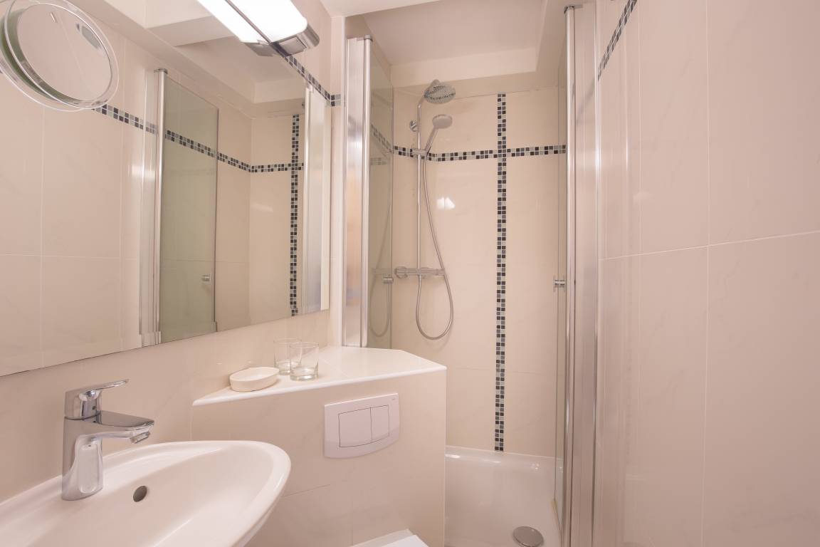 Von hier aus erreichen Sie barrierefrei das Schlafzimmer mit Doppelbett sowie Dusche und WC.