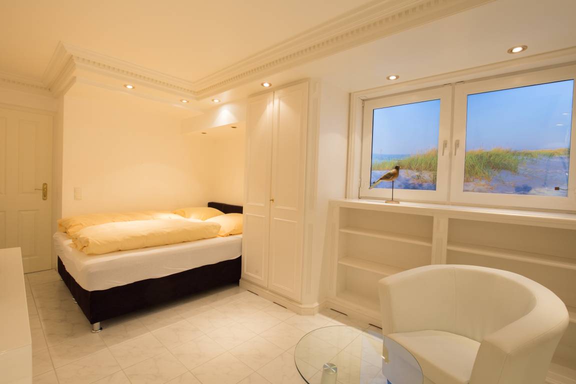 140 m² große 4 Zimmer-Ferienwohnung mit exklusiver Ausstattung, Meerblick und Südterrasse, 3 Schlafzimmern und 2 Duschbädern in Wenningstedt.