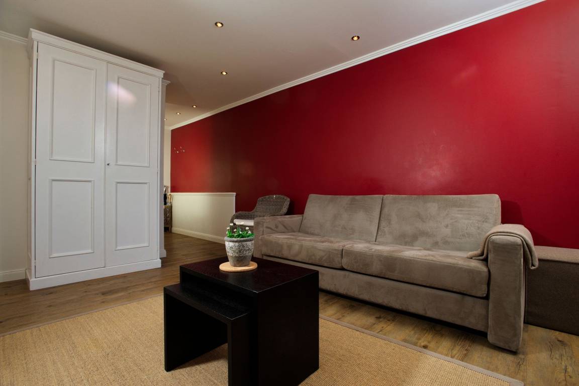 Helle Holzverkleidungen geben dem Appartement eine besondere Note.