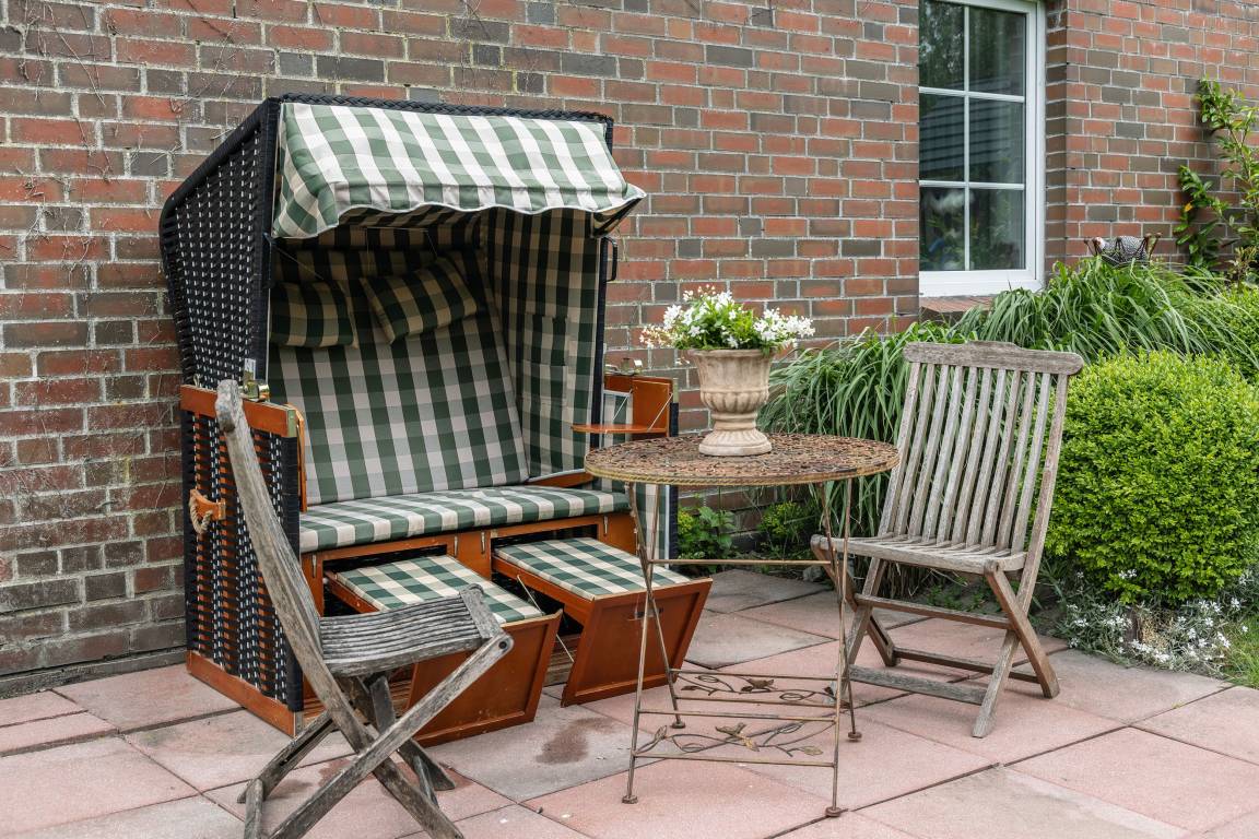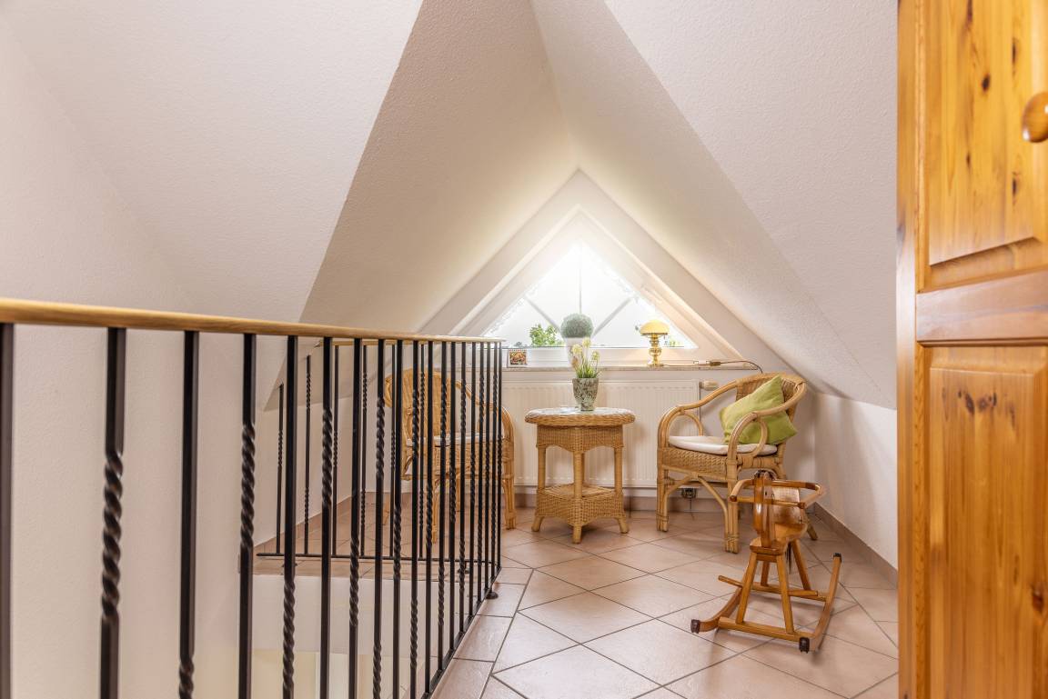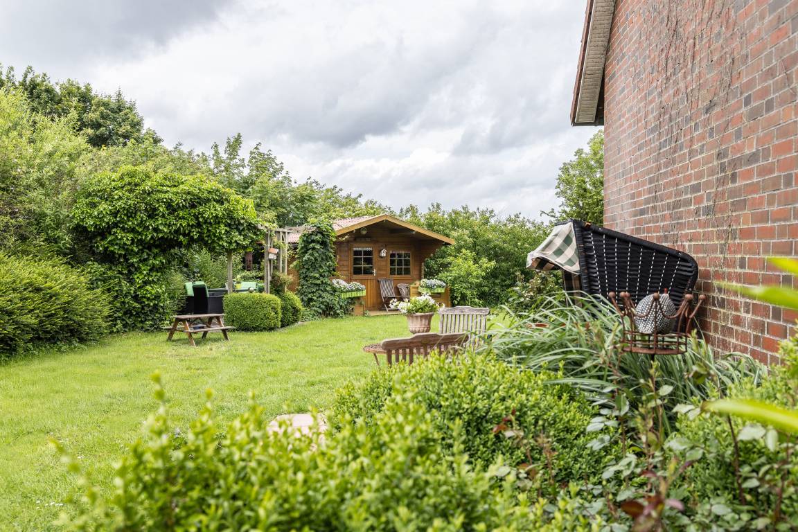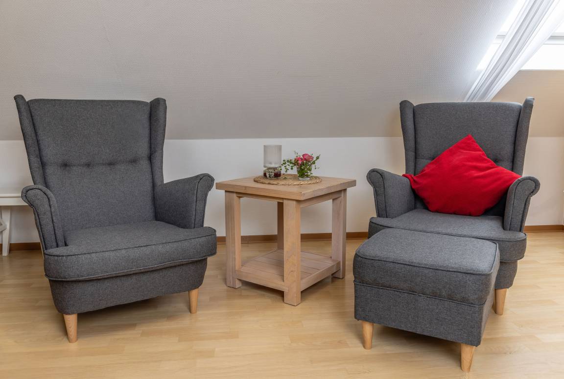 Die "Utkiek" bietet auf ca. 35 m² eine einladende Unterkunft für bis zu 2 Personen – ideal für Pärchen oder Oma und Opa die mit der Familie mitreisen möchten. Die Wohnung kann komplett eigenständig genutzt werden oder als "Zusatzzimmer" zu unseren Wohnungen "Hoffblick" oder "Wietkiek". Die Wohnung im 2.Obergeschoss ist hell und freundlich gestaltet und verfügt über eine gut ausgestattete Küche, gemütliche Wohn- und Schlafbereiche sowie moderne Technik wie Sat-TV und DVD-Player. Von hier aus genießen Sie einen herrlichen Blick über den Hof und die umliegenden Wiesen – perfekt zum Abschalten und Erholen.