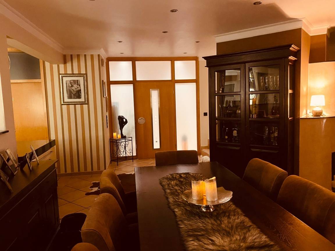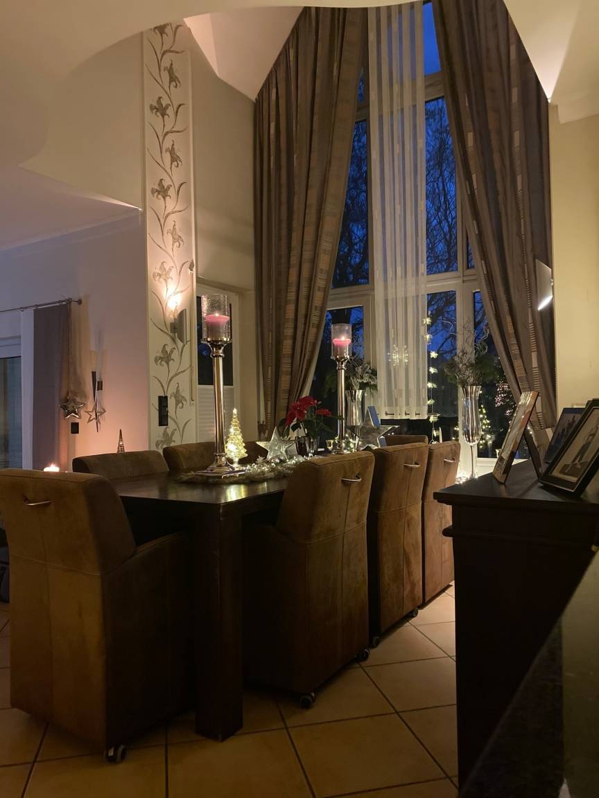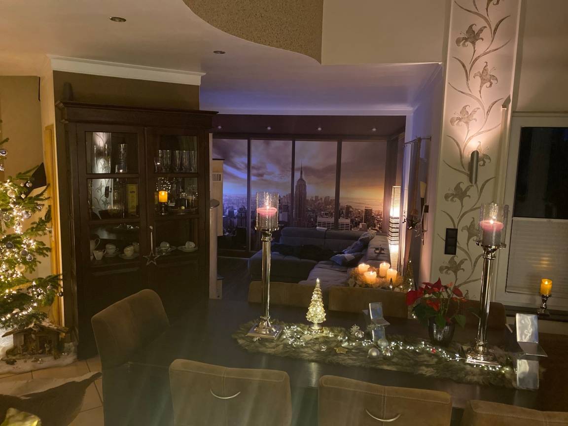 Der Essbereich bietet Platz für 8 Personen. Im Wohnbereich bieten wir ein gemütliches Sofa mit Smart TV(Netflix usw.) und Kamin. Das ganze Erdgeschoß ist mit einem Sonos Sound System für kristallklaren Sound ausgestattet.
