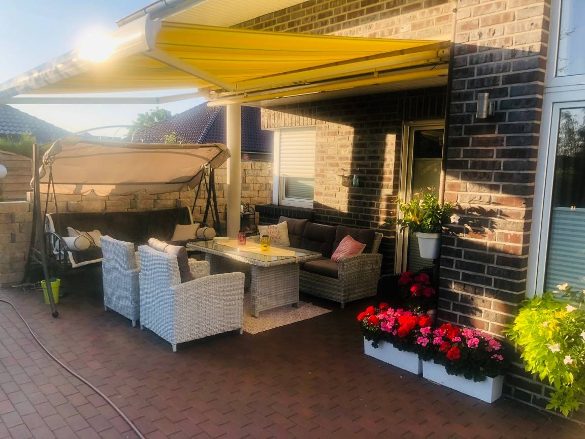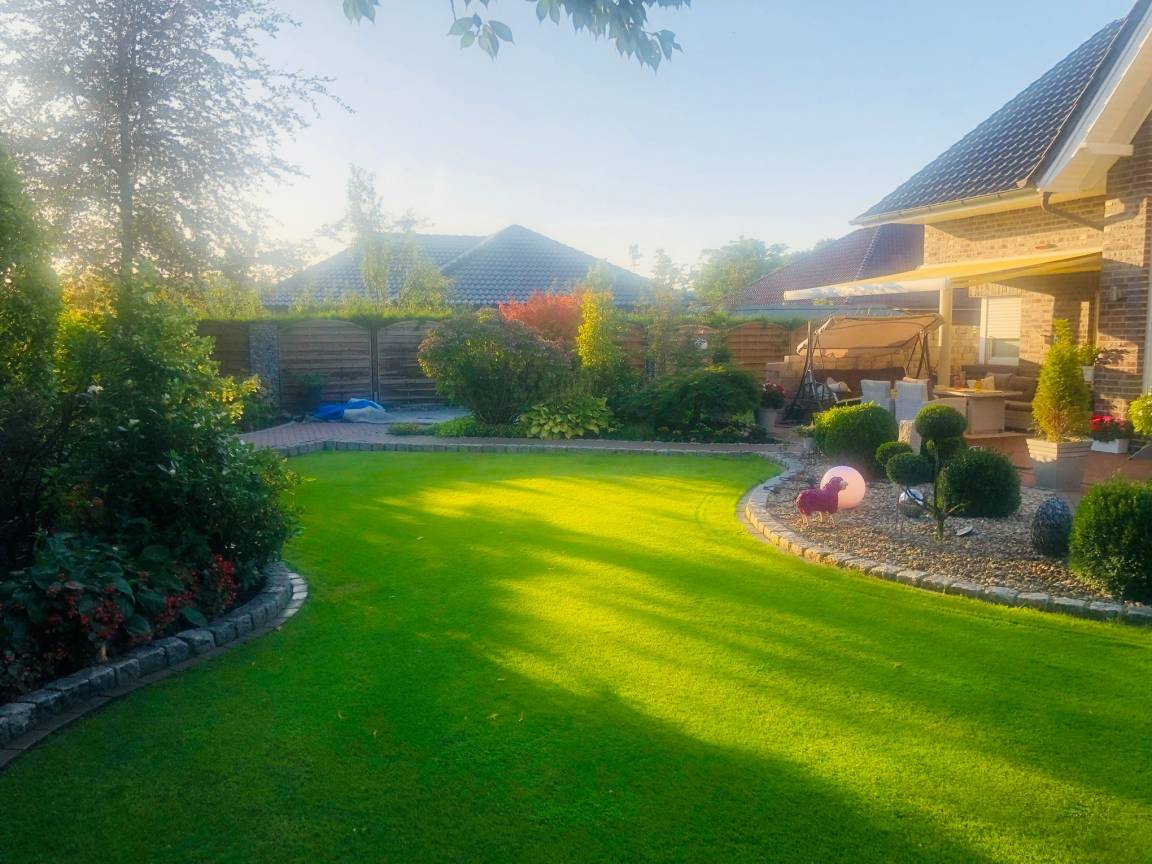 Der große Garten ist komplett umzäunt. Die großzügige Terrasse lädt zum Verweilen ein und das entspannte Ambiente