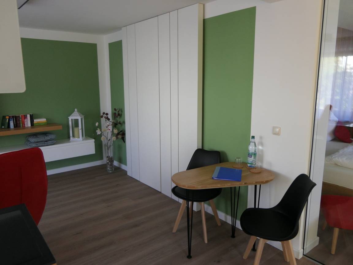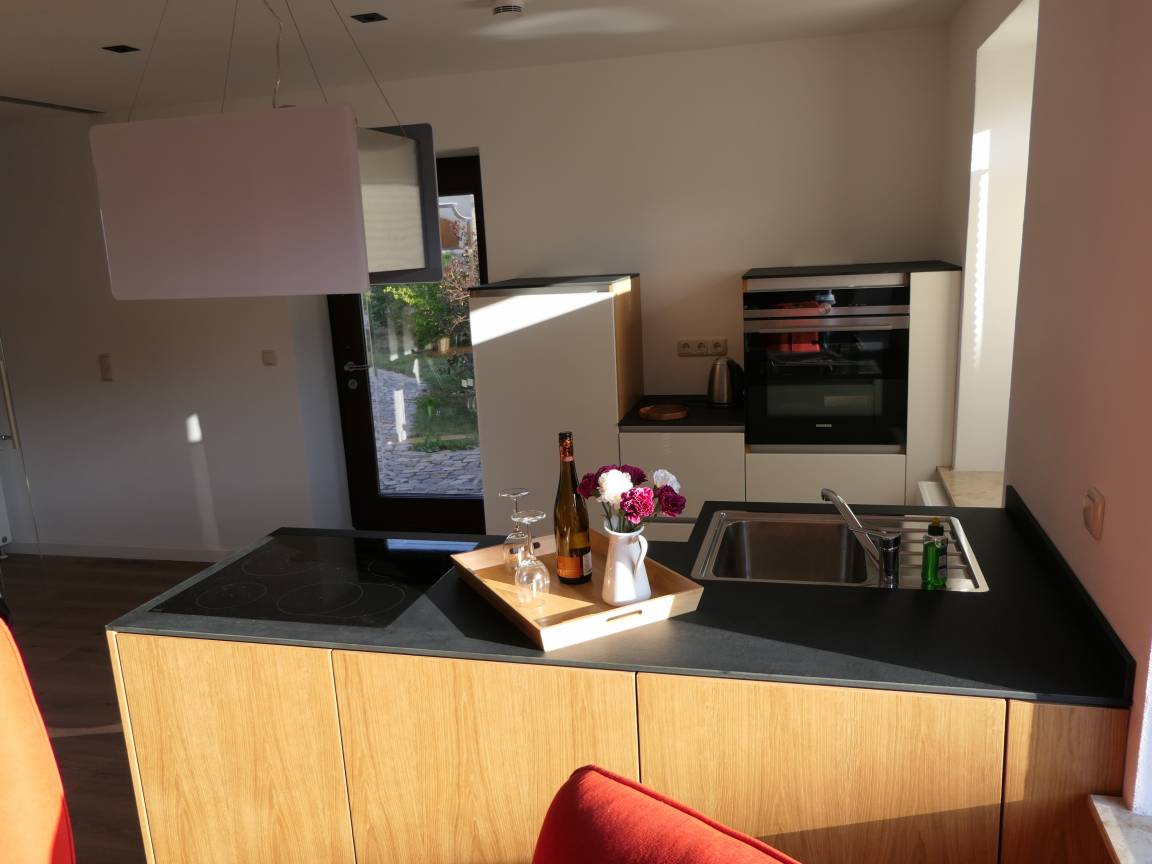 Die offene Küche mit Ihrem Wohn- und Essbereich schließt an das Schlafzimmer an. Die Küche ist mit allen notwendigen Elektrogeräten ( Induktionskochfeld, Backofen, Geschirrspüler, Kühlschrank mit Gefrierfach, sowie Kaffeemaschine, Wasserkocher und Toaster) ausgestattet. Neben diesen Geräten finden Sie auch Geschirr und die benötigten Kochutensilien in unserer Küche vor.