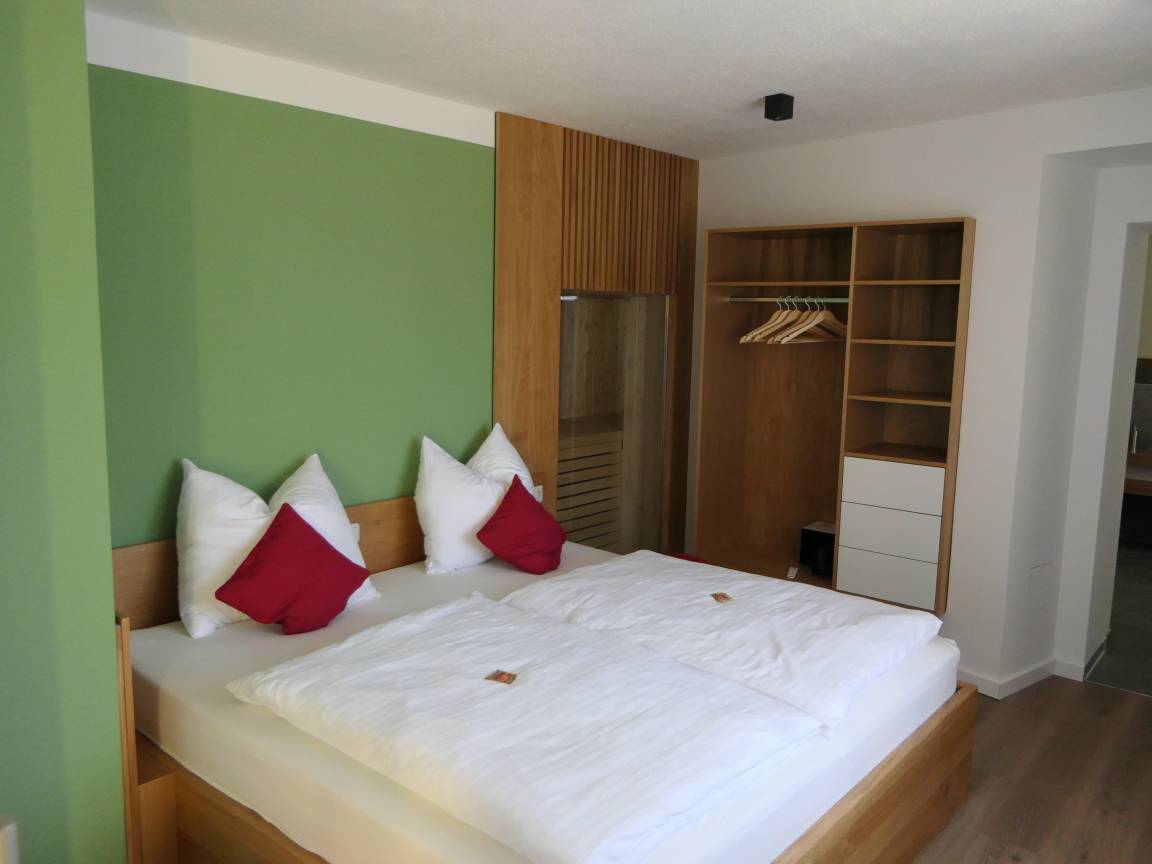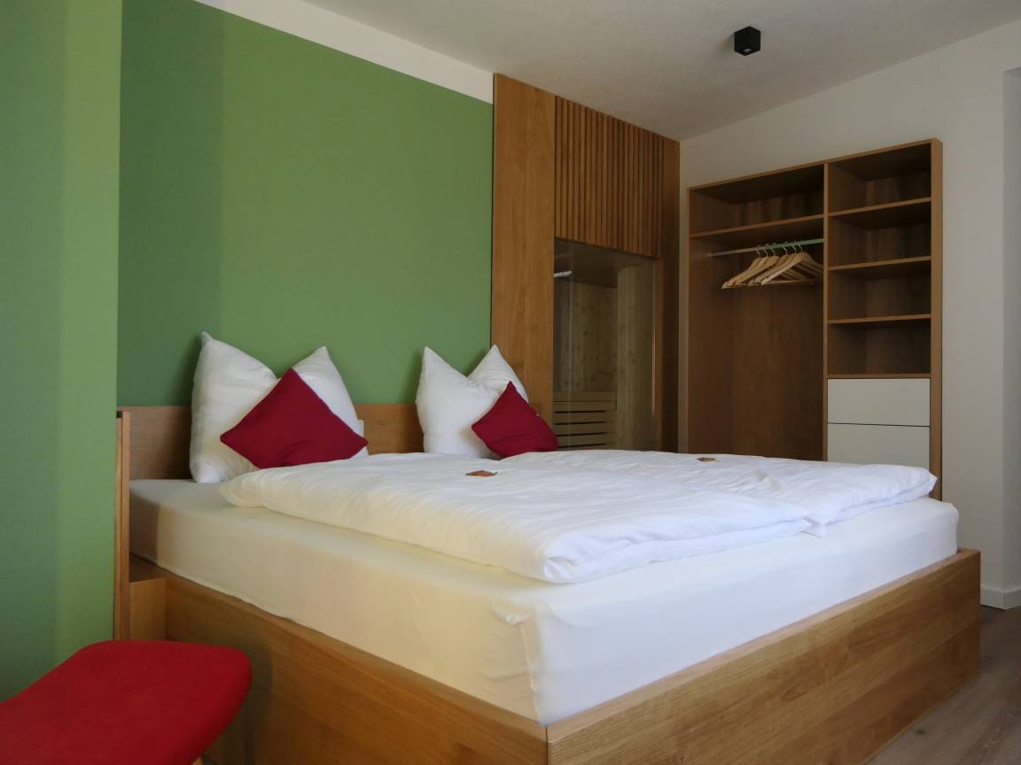 Das großzügige Badezimmer verfügt über DU/WC, Föhn, Kosmetikspiegel und unserem Highlight der integrierten Sauna.