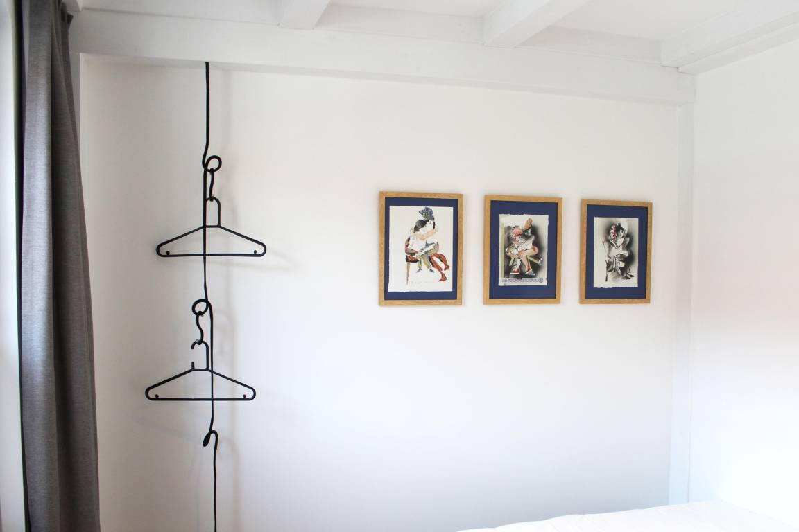 Bitte beachten Sie, dass es aus Platzgründen keinen zusätzlichen Kleiderschrank gibt. Für Kleidung stehen jedoch vier große Schubladen unter dem King-Size-Bett sowie die auf den Fotos gezeigten Garderoben und Wandregale zur Verfügung.