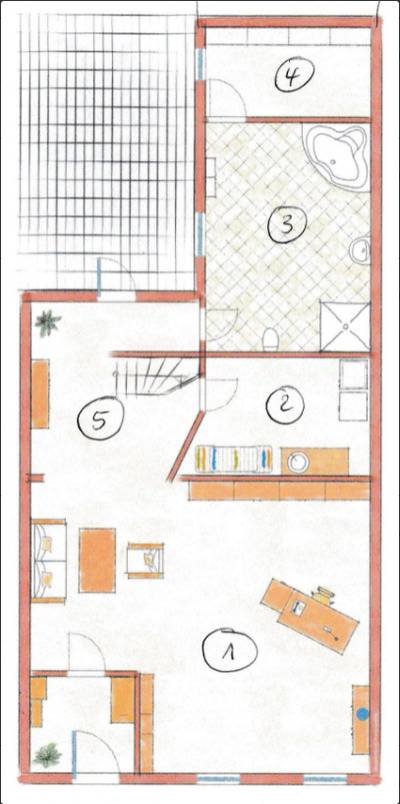 Im Mietpreis sind alle Nebenkosten enthalten, ebenso die Stellung der Bettwäsche, Handtücher, WLAN etc.Räume & Aufteilung