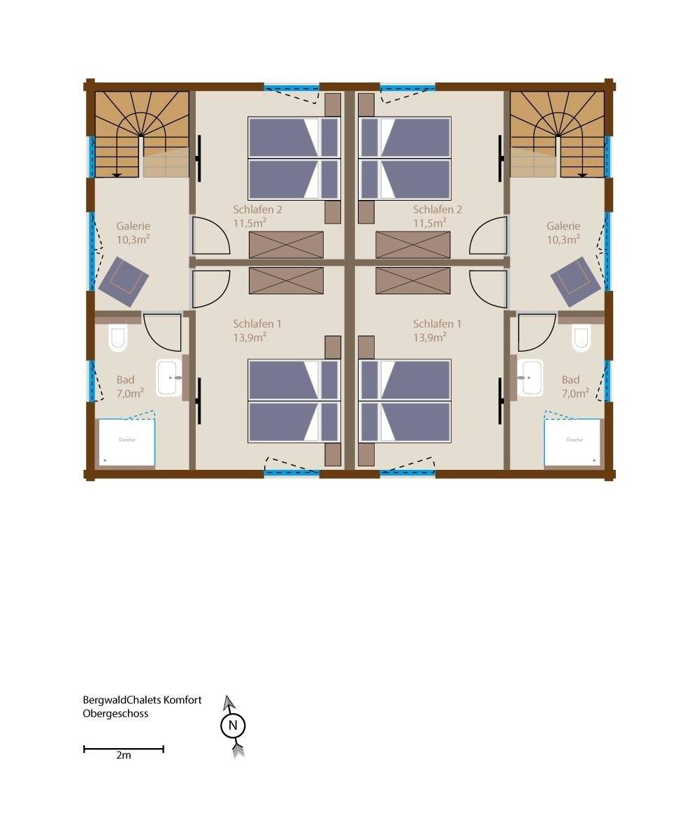 In einer ruhigen Sackgasse schmiegen sich das exklusive Bergwaldchalet "Komfort 2" an einen Hang mit Südwest-Ausrichtung. Das als Doppelhaus konzipierten Chalet ist von Natur umgeben. Rechts plätschert – wenn er Wasser führt – ein Bach und unterhalb des Chalets trifft sich gelegentlich das Rotwild zum „Abendessen".