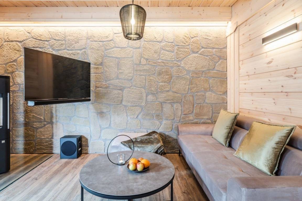 Exklusives , modernes Blockhaus am Berghang inkl. Kaminofen, Sauna, Fußbodenheizung, zwei Bädern, Einbauküche mit Vollausstattung, möblierte Terrasse, SmartTV im Wohn- und den zwei Schlafzimmern, kostenloses WLAN . Genießen Sie die Natur, in vollen Zügen