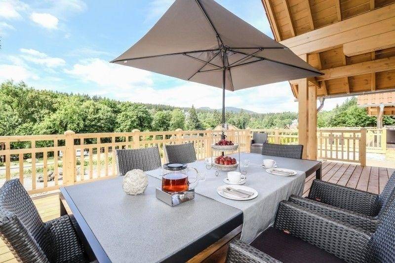 5-STERNE-Blockhaus in traumhafter Hanglage besticht durch eine luxuriöse Ausstattung im angesagten Stilmix. Höchster Komfort mit 2 Bädern, Sauna, Kamin, großer Terrasse, Fahrradgarage und Insel-Küche.