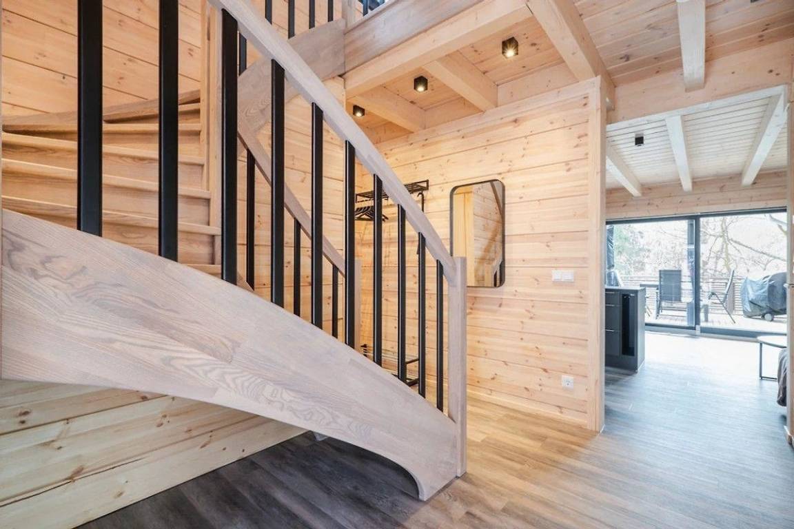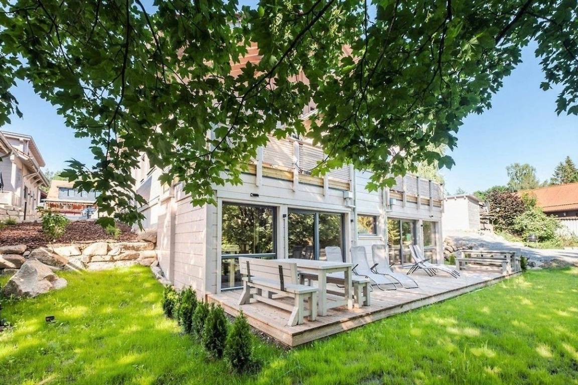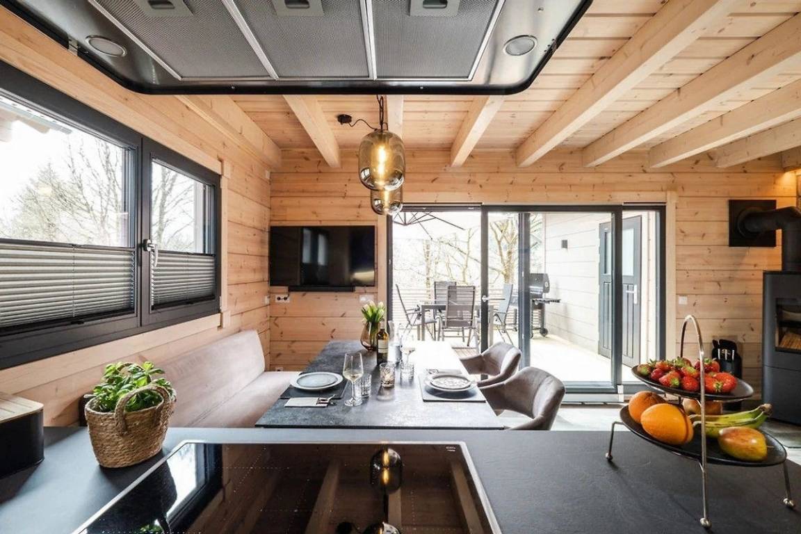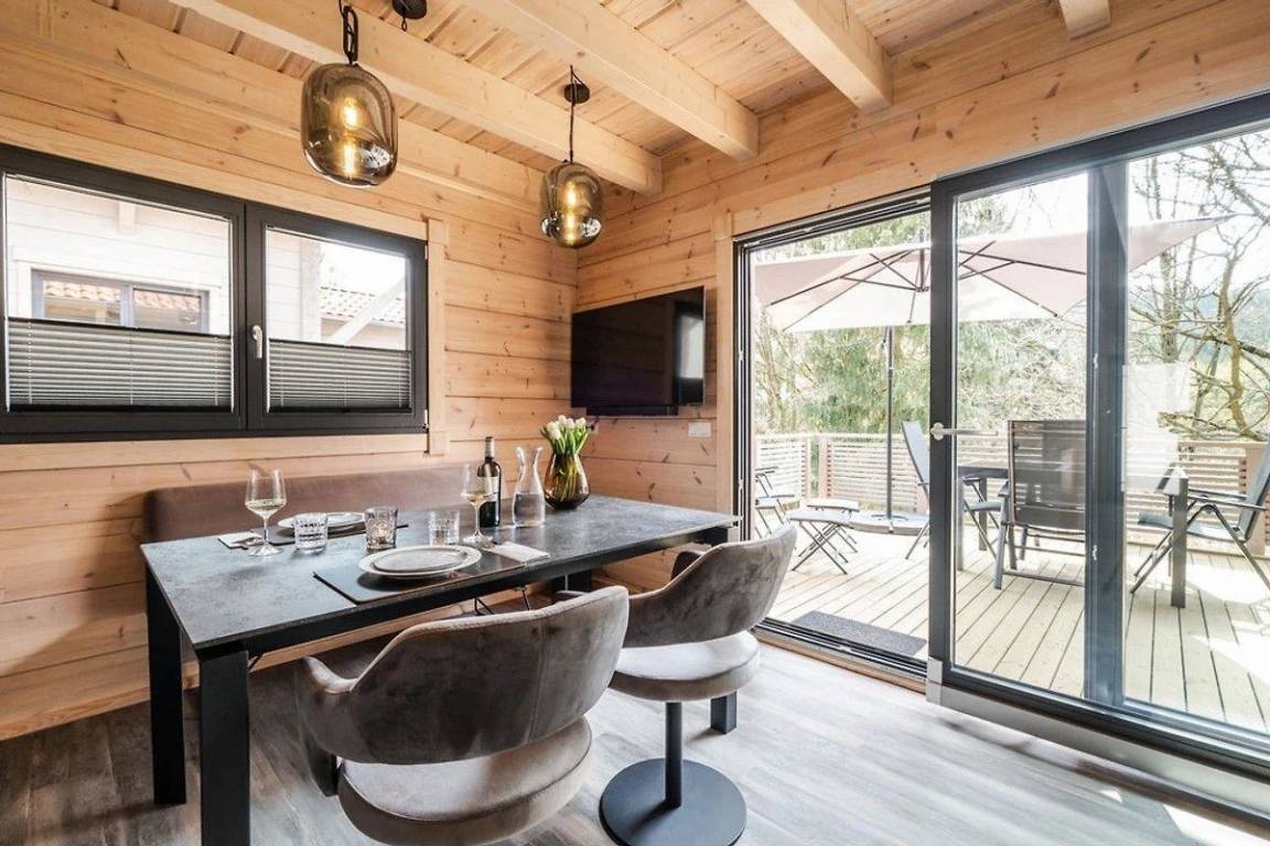 Exklusives , modernes Blockhaus am Berghang inkl. Kaminofen, Sauna, Fußbodenheizung, zwei Bädern, Einbauküche mit Vollausstattung, möblierte Terrasse, SmartTV im Wohn- und den zwei Schlafzimmern, kostenloses WLAN . Genießen Sie die Natur, in vollen Zügen.