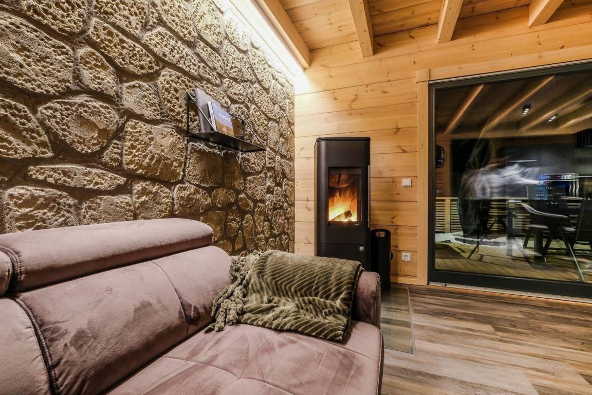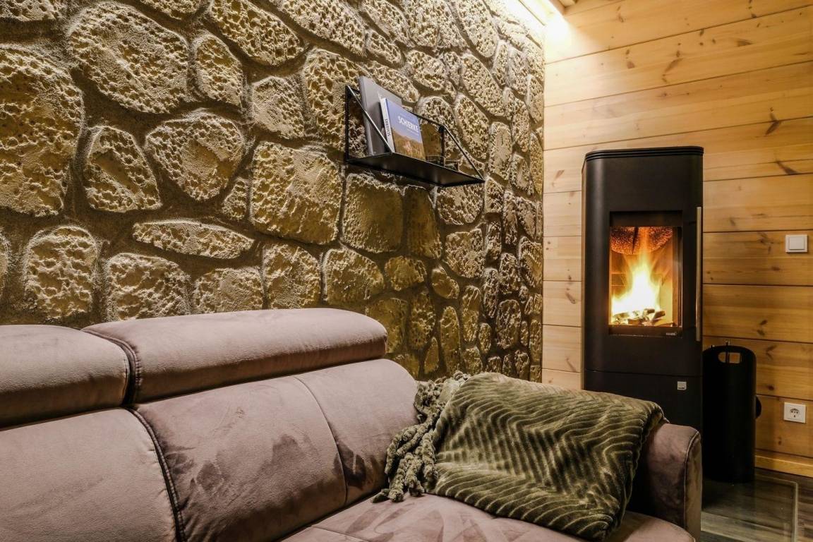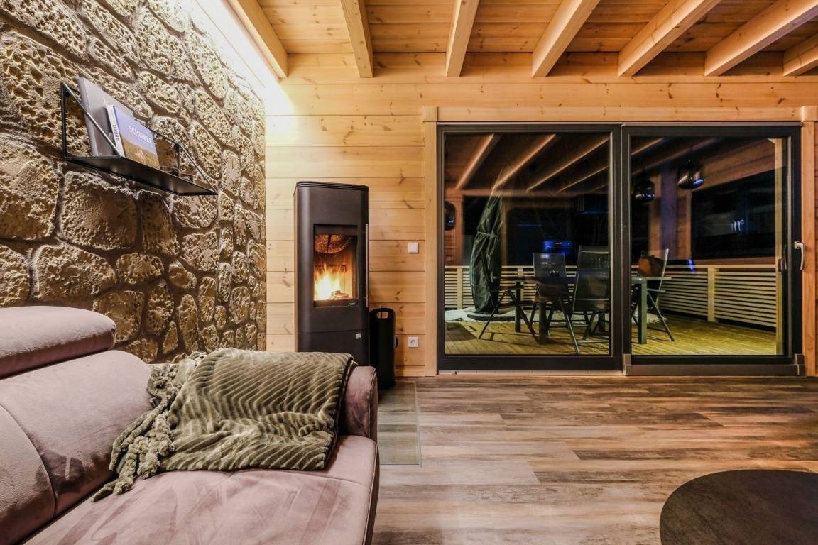 Exklusives , modernes Blockhaus am Berghang inkl. Kaminofen, Sauna, Fußbodenheizung, zwei Bädern, Einbauküche mit Vollausstattung, möblierte Terrasse, SmartTV im Wohn- und den zwei Schlafzimmern, kostenloses WLAN . Genießen Sie die Natur, in vollen Zügen.