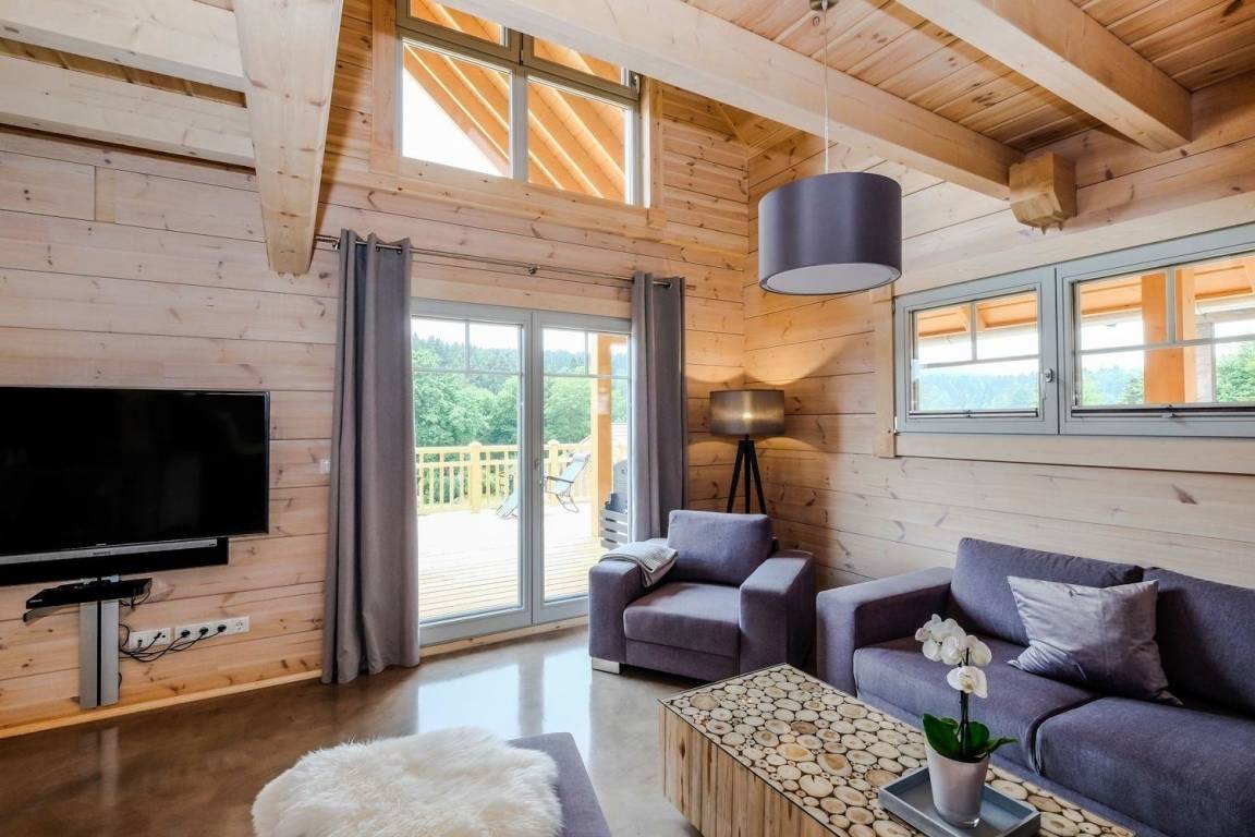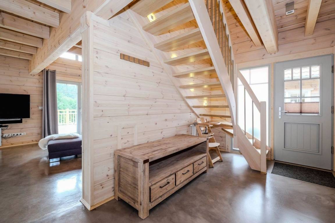 5-STERNE-Blockhaus in traumhafter Hanglage besticht durch eine luxuriöse Ausstattung im angesagten Stilmix. Höchster Komfort mit 2 Bädern, Sauna, Kamin, großer Terrasse, Fahrradgarage und Insel-Küche.
