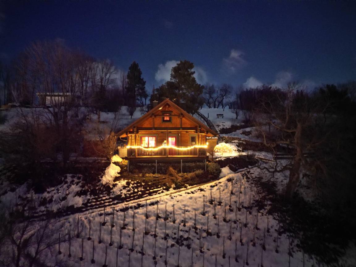 Das Holzblockhaus liegt am Rande des Zentrums auf einem Berg. Es steht auf einem naturbelassenen großen Grundstück mit vielen Obstbäumen und dennoch fußläufig zum Stadtzentrum